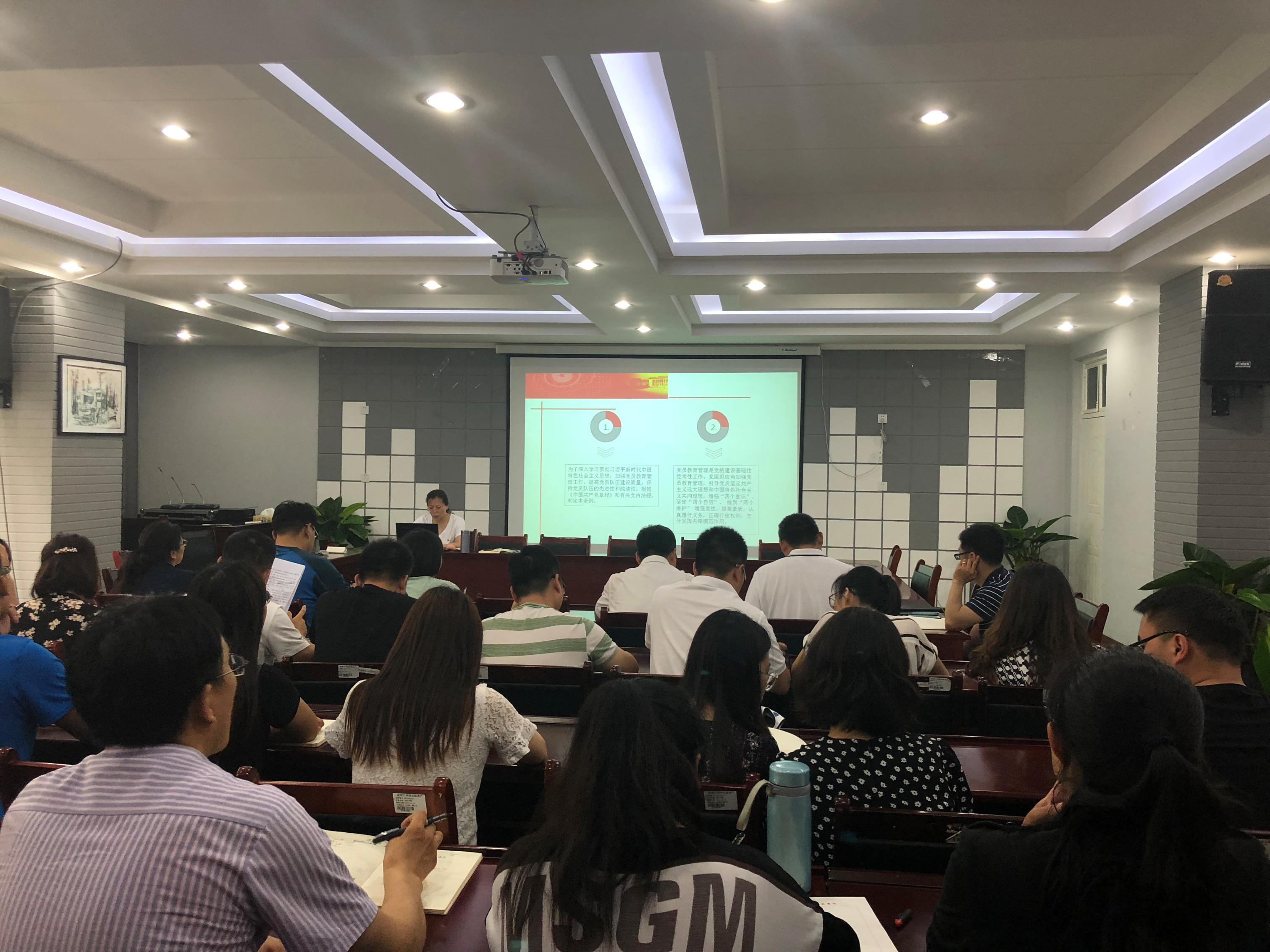 为推动全面从严治党向纵深发展,加强党员教育管理工作,6月5日下午,土建学院党总支书记王月本以深入学习贯彻《中国共产党党员教育管理工作条例》为题,为全体党员上了一堂专题党课。
