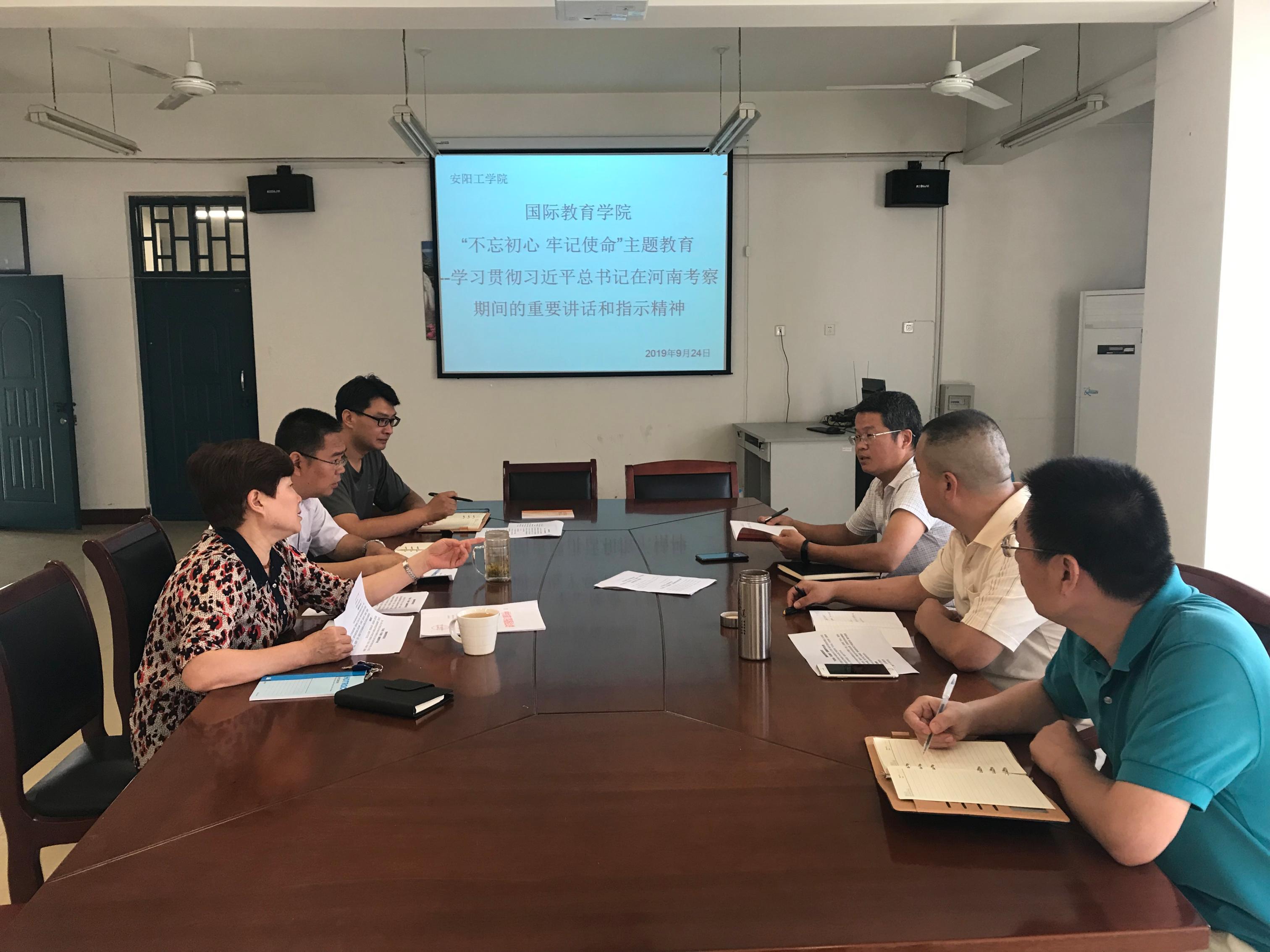 9月24日上午,国际教育学院在A12号楼303会议室专题学习习近平总书记在河南考察期间的重要讲话和指示精神。