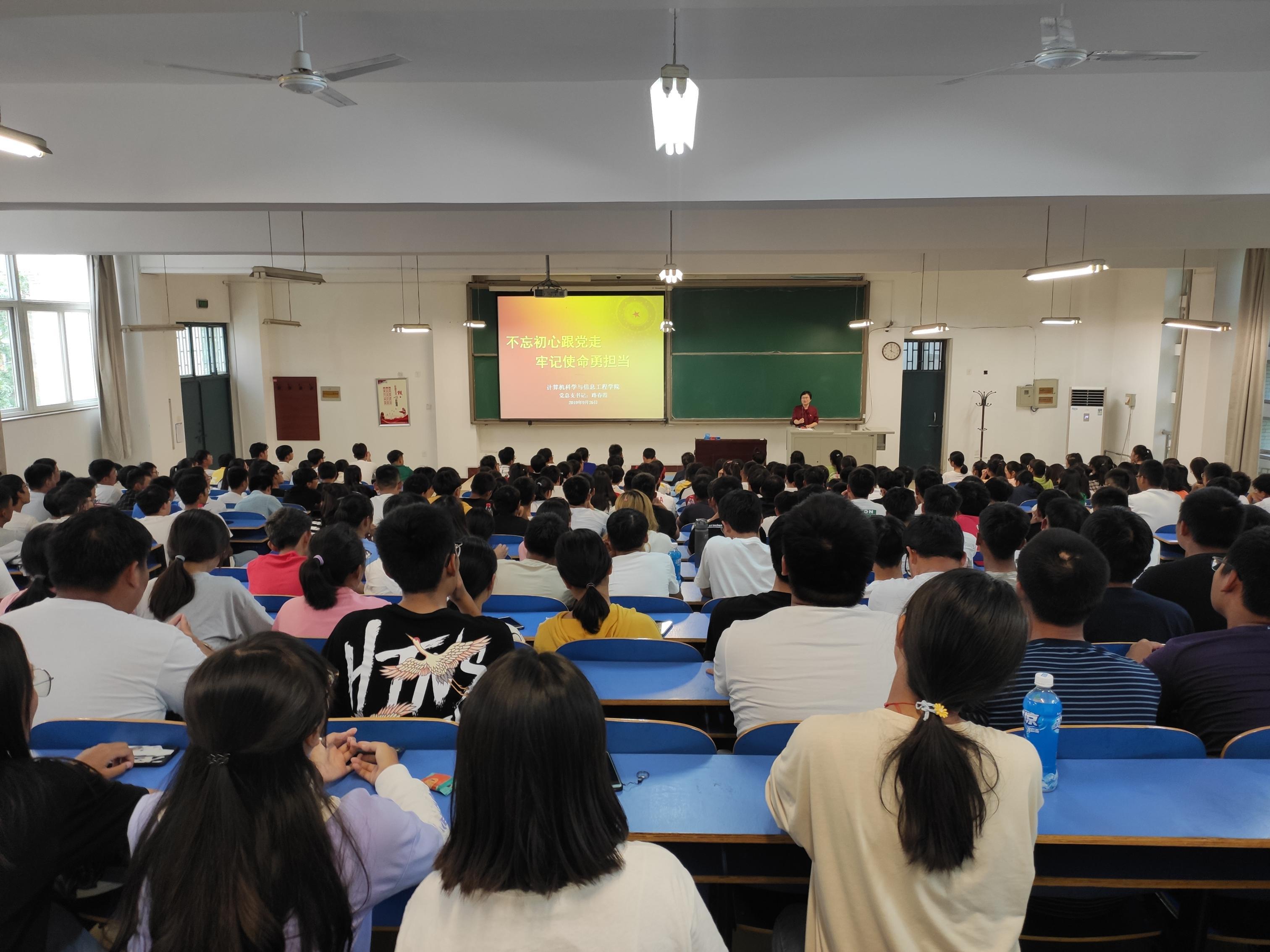 9月26日下午,计算机科学与信息工程学院党总支书记路春霞在A18-205教室以《不忘初心跟党走、牢记使命勇担当》为题为2019级新生讲了一堂深入人心的党课,近300名新生聆听了党课。