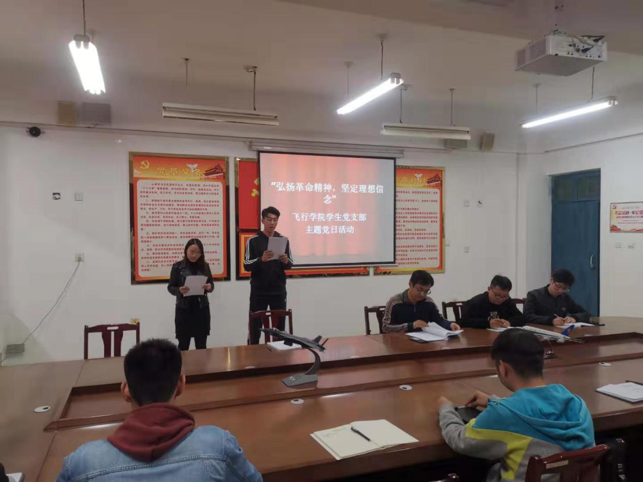 按照我校“不忘初心、牢记使命”主题教育工作要求,10月22日,飞行学院学生党支部开展了“弘扬革命精神,坚定理想信念”主题党日活动,学院党总支副书记刘波主持,飞行学院辅导员和学生党员参加活动。