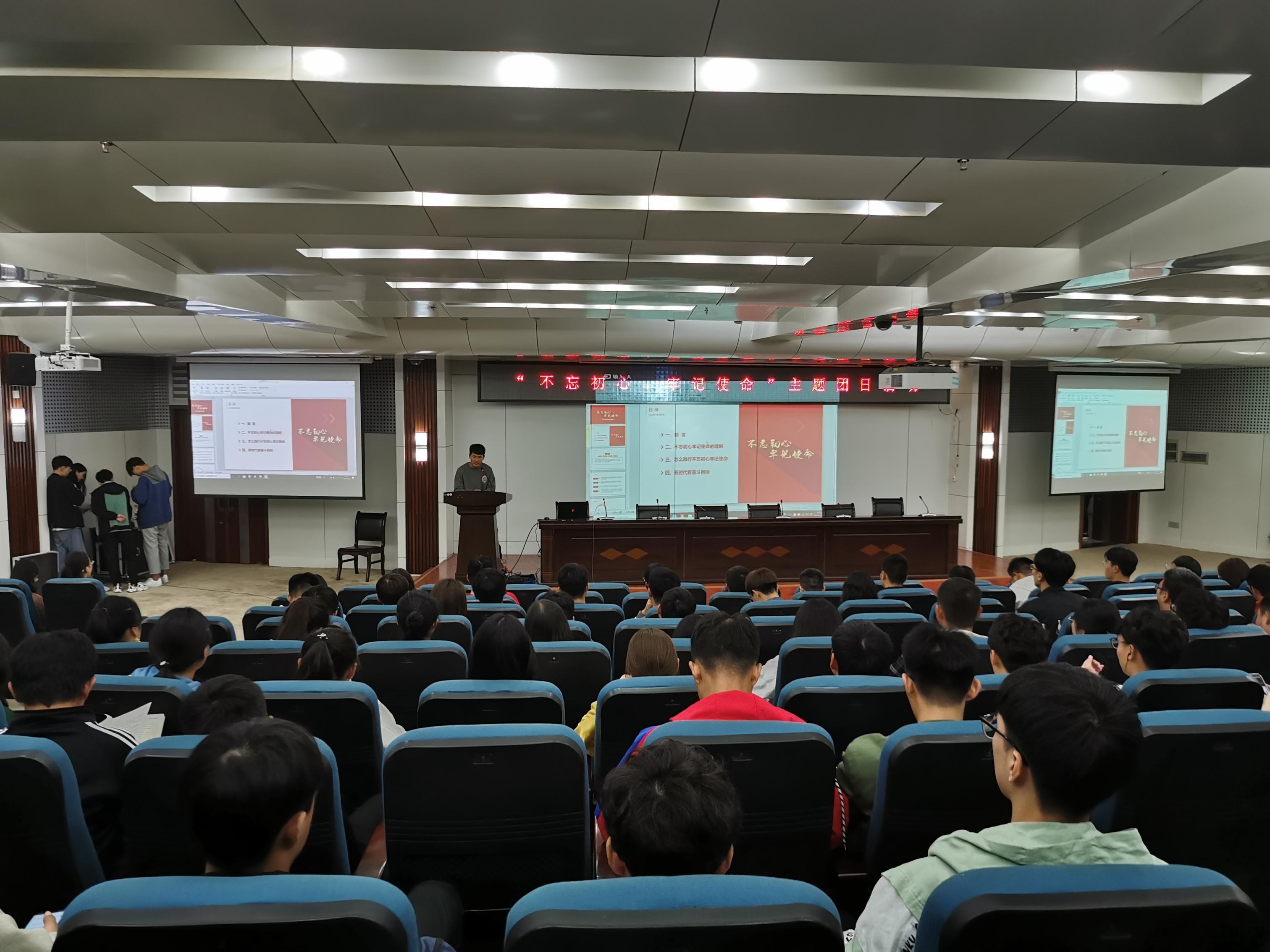 为深入学习习近平新时代中国特色社会主义思想,加强革命传统教育,增强大学生的责任意识和爱国情怀,10月23日晚,由校团委主办、社团联合会承办的“不忘初心、牢记使命”主题团日宣讲活动在艺术楼二楼报告厅举行。