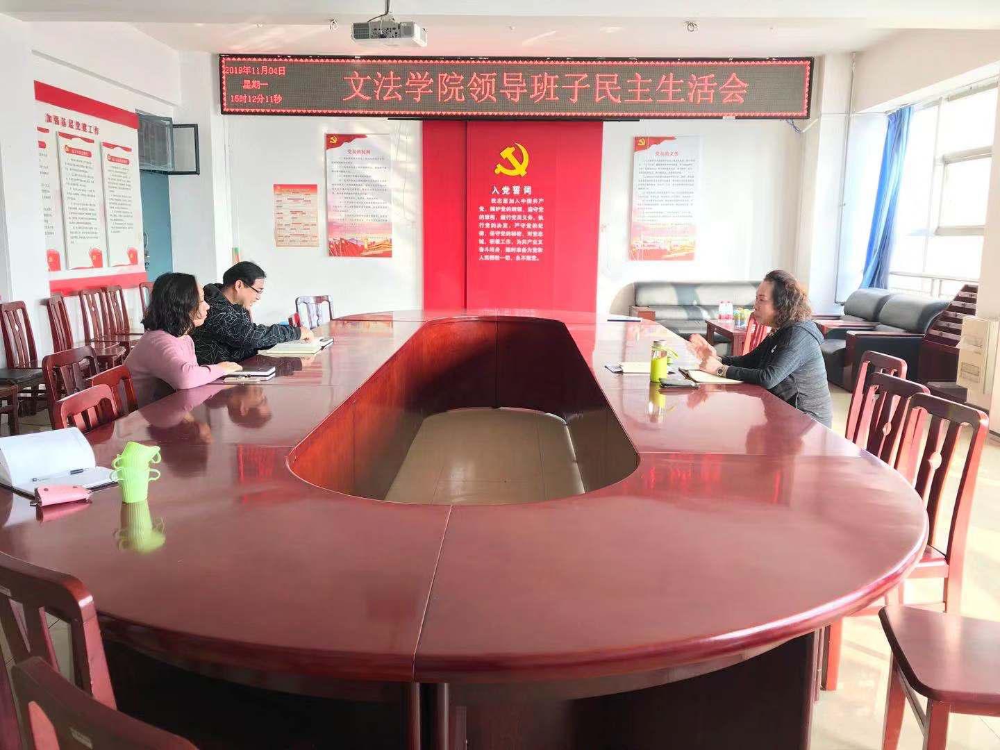 为贯彻落实习近平总书记关于“不忘初心、牢记使命”主题教育重要精神,按照学校党委“不忘初心、牢记使命”主题教育工作部署,11月4日下午,文法学院领导班子在党员活动室召开“不忘初心、牢记使命”专题民主生活会。