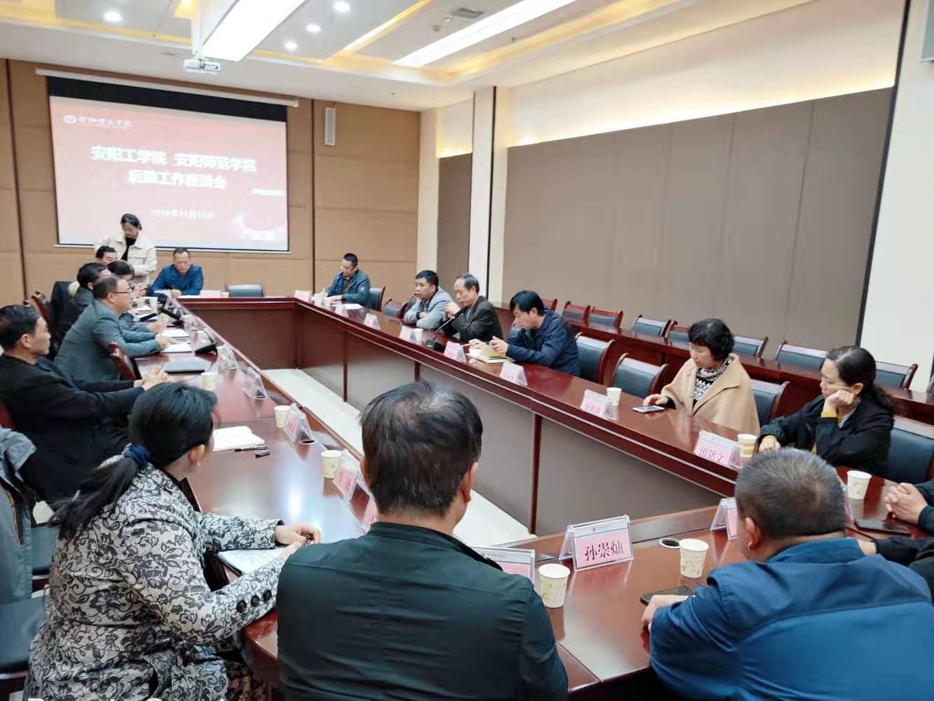 座谈会上,我校后勤管理处处长周钢领、安阳师范学院后勤处处长李红勋分别介绍了两校后勤处基本情况,结合两校的后勤服务定位、服务方向,围绕如何落实好学校中心工作和办师生满意的后勤展开细致的探讨,就服务工作中师生关注的热点、难点问题进行了深入的交流。交流现场讨论气氛热烈,双方表示将进一步加强交流、互相学习、相互借鉴、取长补短。