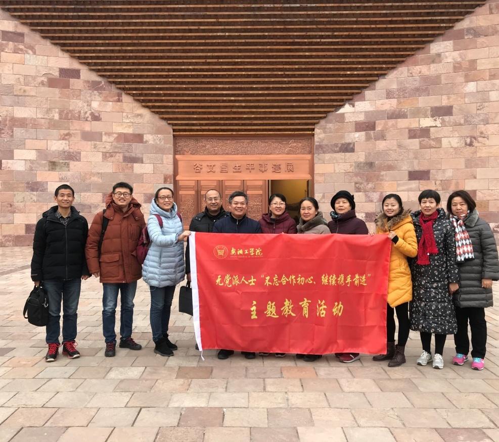 为贯彻落实河南省委统战部《关于支持各民主党派、无党派人士开展“不忘合作初心,继续携手前进”主题教育活动实施方案》和河南省委统战部办公室、安阳市委统战部《关于支持无党派人士开展“不忘合作初心,继续携手前进”主题教育活动有关安排》等文件精神,按照《安阳工学院无党派人士开展“不忘合作初心、继续携手前进”主题教育实施方案》要求,11月30日,校党委统战部组织了我校无党派和党外知识分子代表人士赴林州谷文昌生平事迹展、扁担精神纪念馆、社会主义新农村——庙荒村、止方村等红色教育基地实地参观学习,重温革命历史,铭记光荣传统,亲身感受谷文昌等优秀共产党人勤政务实、一心为民、敢于担当、无私奉献的感人事迹,亲身感受在党的领导下社会主义新农村建设取得的辉煌成就。