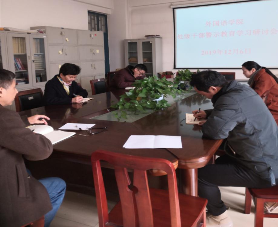 为深入开展“不忘初心、牢记使命”主题教育,进一步加强党风廉政建设,12月6日上午,外国语学院在A10-201会议室召开处级干部警示教育集中学习研讨会。