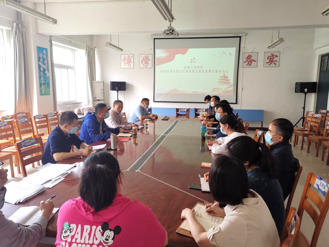 5月13日下午,机械工程学院召开2020年度全面从严治党暨以案促改警示教育会议。学院党总支中心组成员、各党支部书记、科级以上干部参加会议。