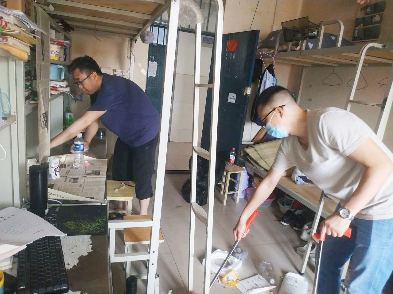 活动中,计算机学院党总支组织教工党员和入党积极分子共计40人对本学院所有本科毕业生的宿舍进行了全面清扫。党总支书记路春霞、副院长孙高飞、党总支副书记杨聪聪带领教职员工分别到行知苑学生公寓、厚德苑学生公寓、善工苑学生公寓开展清扫活动,每到一个宿舍,教师们都认真帮助学生整理宿舍物品、清扫宿舍地面、处理宿舍垃圾、打开门窗通风换气。经过半天的辛勤劳动,教师们共完成109间宿舍的清扫任务。