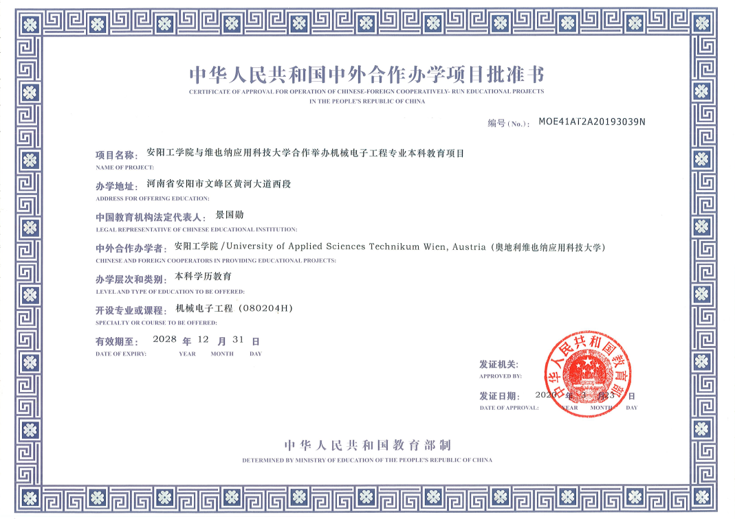 获批教育部中外联合办学机械电子工程本科教育项目