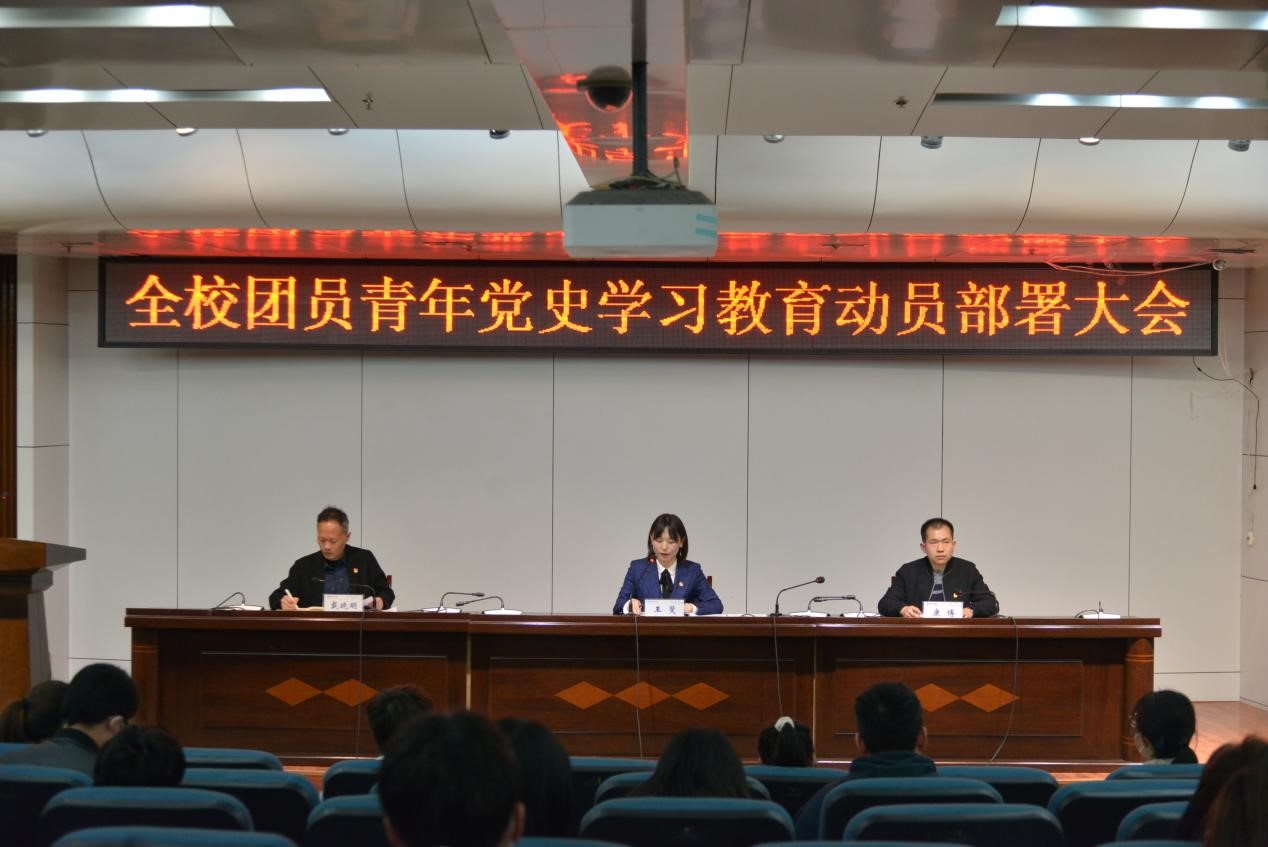 3月24日下午,我校在艺术楼二楼报告厅召开团员青年党史学习教育动员部署大会,校团委全体工作人员、各学院团总支负责人、学生团员代表共100余人参加会议,校团委书记王斐主持会议。