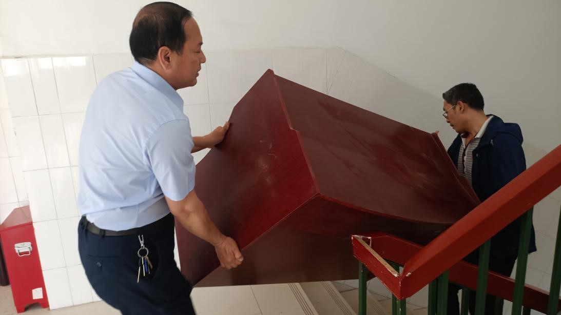 活动中,校区领导班子成员带头参加劳动,大家同心协力,克服重重困难,不畏天气炎热,不怕苦、不怕累,共同将教学楼一楼70多张桌子、100多把椅子搬到三楼的四个教室,布置成专升本自习室,为学生营造温馨清静的学习环境。