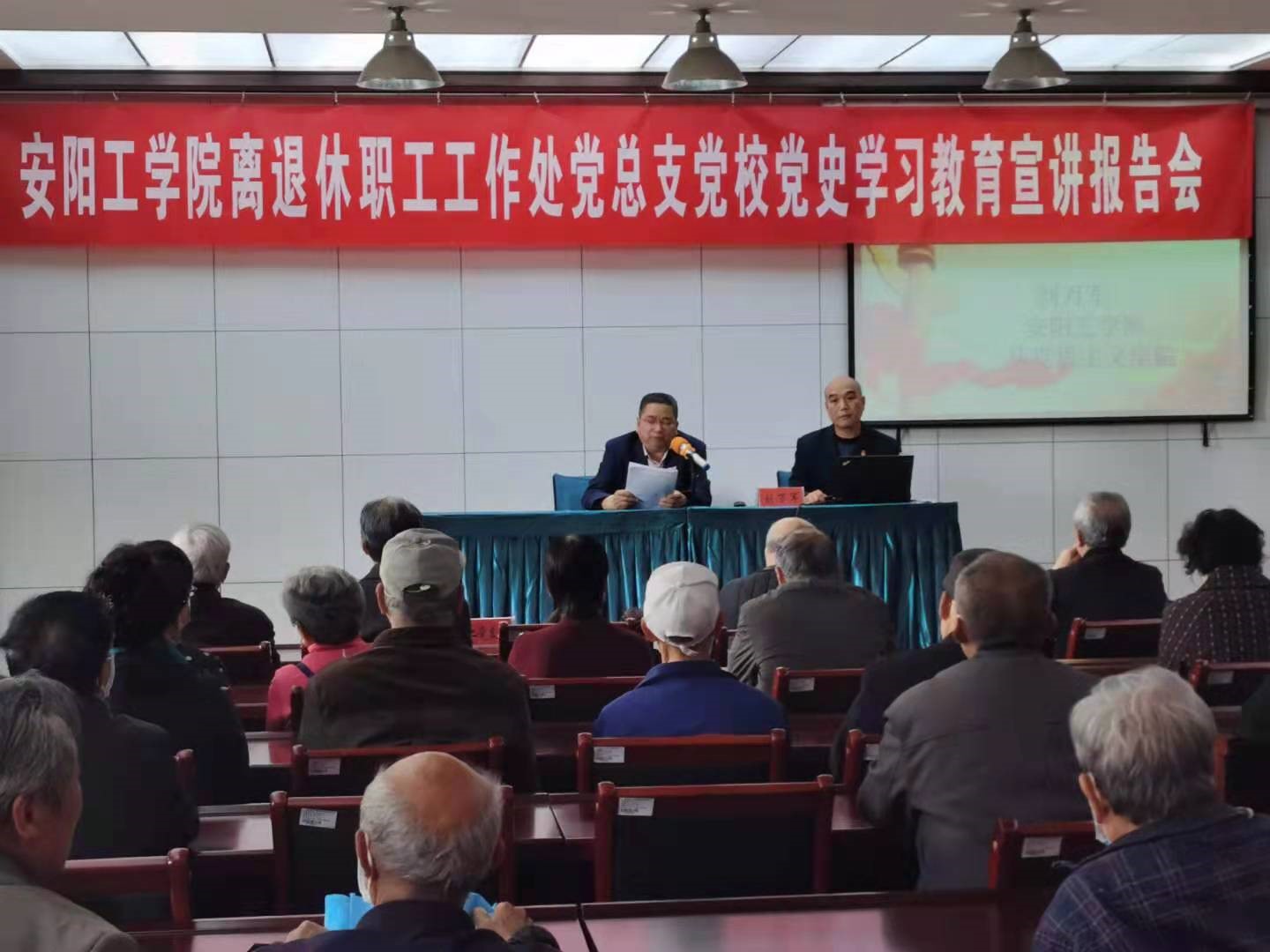 4月28日下午,离退休处党总支党校举办党史学习教育宣讲报告会,马克思主义学院刘万军副教授应邀作宣讲报告,离退休处全体工作人员、离退休党员干部代表共计70余人参加报告会。