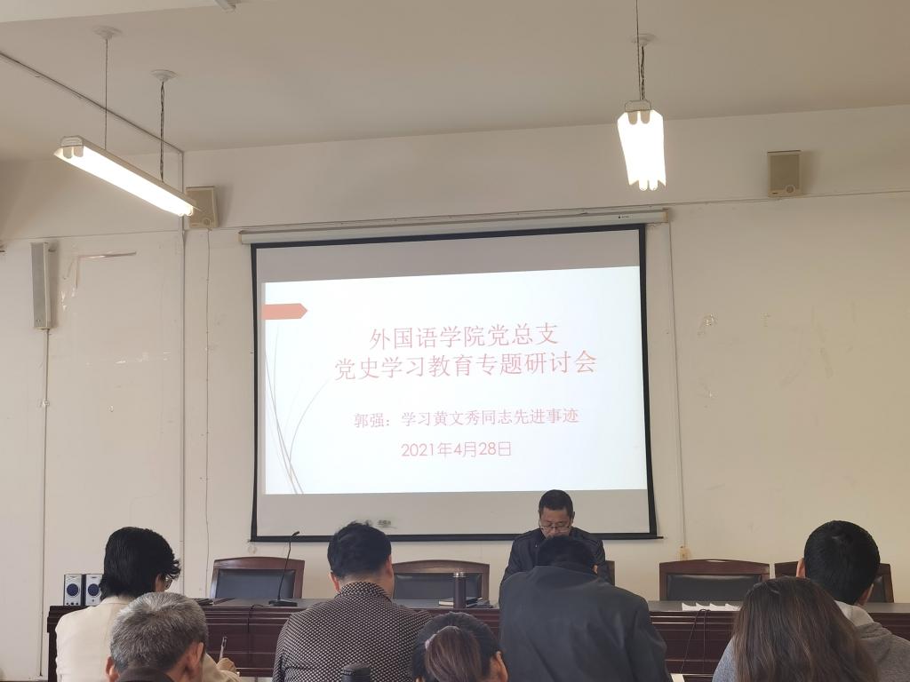 为学习优秀党员先进事迹,提高广大党员思想觉悟,推动党史学习教育深入开展,4月28日下午,外国语学院党总支召开党史学习教育专题研讨会,学院领导班子成员、全体党员教师参加会议,党总支书记郭强主持会议。