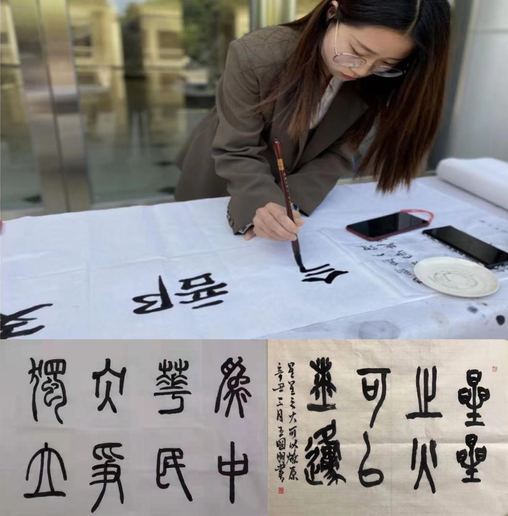 活动中,大家通过查阅文献资料的方式一起回顾了中国共产党的百年奋斗历程,并结合专业特色,围绕重大历史事件、革命先辈的名言警句进行书法创作。同学们以刚劲有力、个性鲜明的书法作品表达了对革命前辈的无比敬仰和对中国共产党的无限热爱。