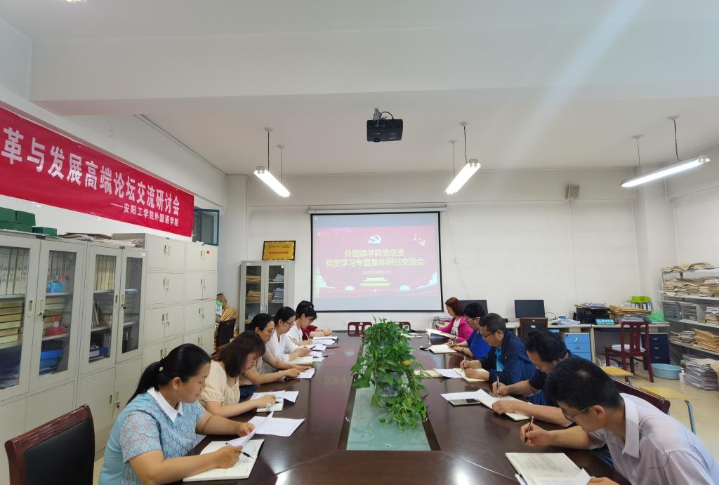 6月17日下午,外国语学院党总支在A10-201会议室召开党史学习专题研讨会。学院党总支中心组成员、各党支部书记参加会议,党总支书记郭强主持会议。