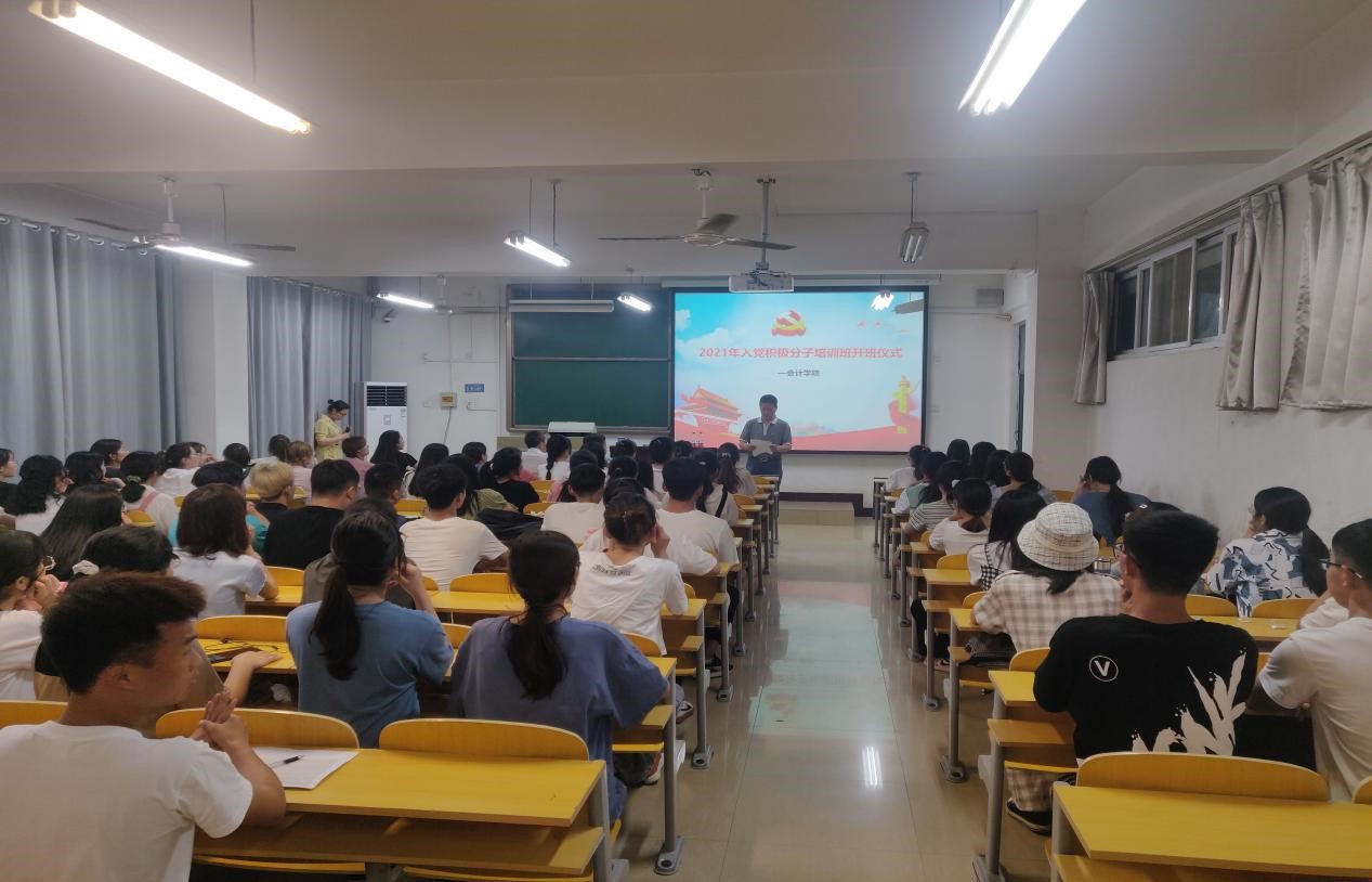为进一步做好发展党员工作,保证党员发展质量,6月15日,会计学院分党校在A11-408教室举行2021年第一期入党积极分子培训班开班仪式。70余名学生入党积极分子参加仪式。