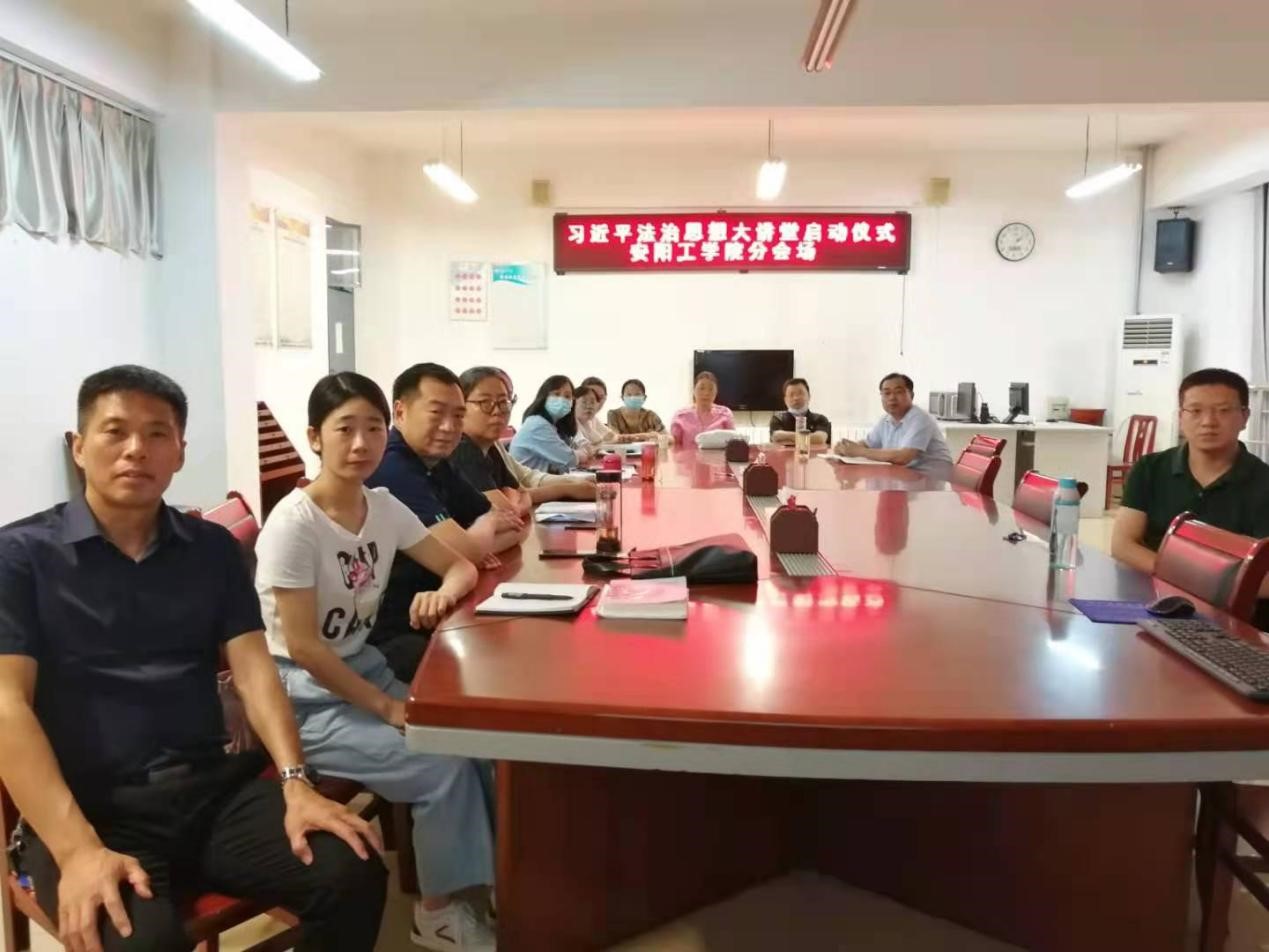 5月28日下午,教育部在京举办习近平法治思想大讲堂启动仪式,商学院在A11-319会议室设立分会场,法学教研室全体教师通过在线形式参加启动仪式。
