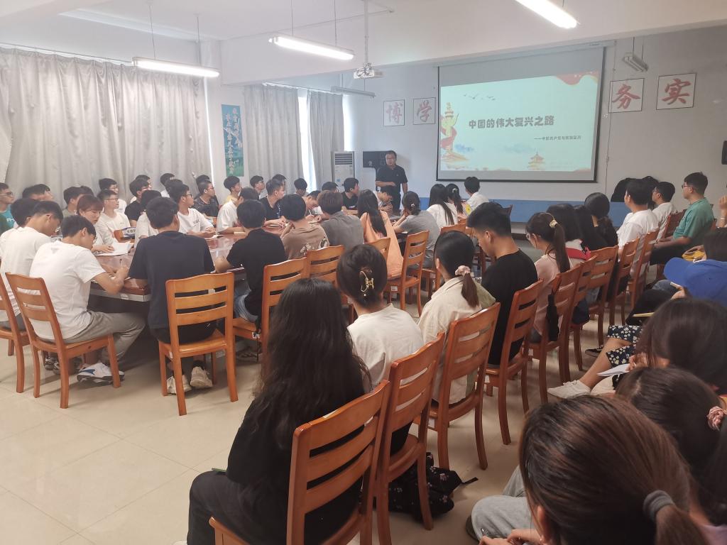 课堂上,邓辉以《中国的伟大复兴之路》为题,结合历史事件,讲述了近代以来中华民族遭受的苦难、中国共产党成立之前各种救国救民的探索,并从站起来、富起来、强起来三个阶段展现了中国共产党的百年奋斗历程和辉煌成就。邓辉指出,历史和现实证明,中国共产党是伟大、光荣、正确的马克思主义政党,坚持中国共产党的领导是历史的选择,是人民的选择。他希望广大青年学生认真学好党史、汲取奋进力量,坚定理想信仰、勇担历史使命,接过实现中华民族伟大复兴的接力棒,为全面建设社会主义现代化国家而努力奋斗。