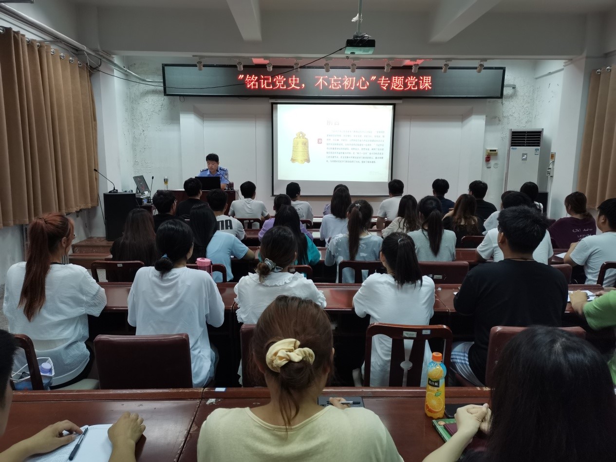 应我校学生工作处、保卫处共同邀请,6月24日晚,安阳市公安局高新分局党委书记、政委徐海峰在B02-316学团会议室为我校50余名学生党员代表讲授专题党课。