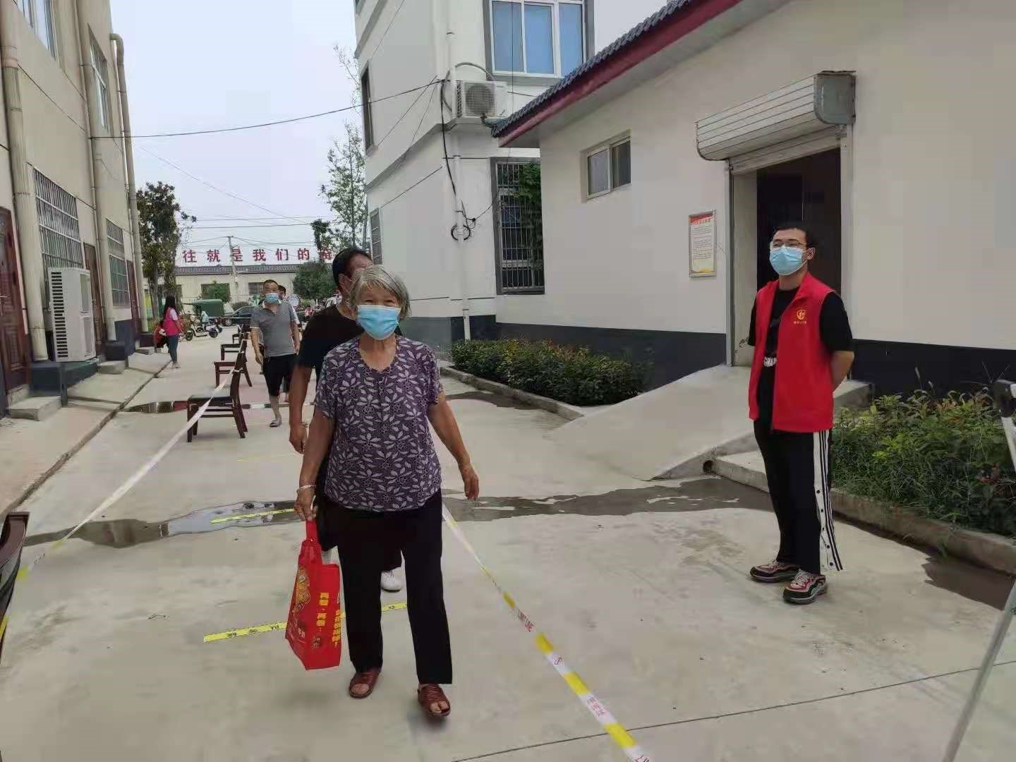 李明在新郑市观音寺镇沂水村核酸检测点执勤