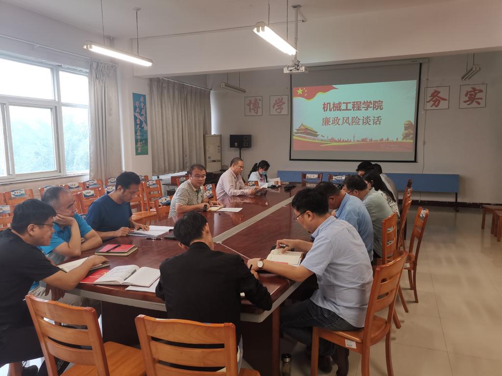 9月22日下午,机械工程学院党总支在A08-302会议室召开廉政风险提醒暨集体廉政谈话会,党总支书记邓辉主持会议,学院领导班子成员,党总支委员,各党支部书记,科级以上干部参加会议。