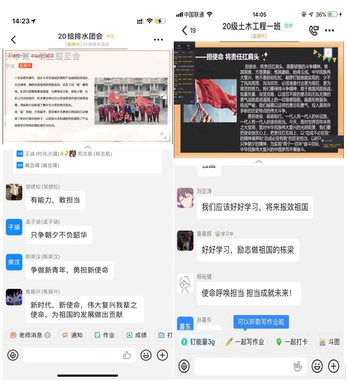 为不断深化“把灾难当教材 与祖国共成长”主题教育活动,进一步引导学生厚植爱国主义情怀,新学期伊始,校团委积极组织全校基层团组织通过多种形式开展 “扛责任、担使命,不负青春韶华”主题团日活动。活动中,全校500多个班级团支部通过线上理论学习、线上分享交流等形式,教育引导广大青年学生积极主动扛责任、担使命,不负青春韶华。广大团员青年纷纷表示,要牢记习近平总书记的嘱托,坚定不移听党话、跟党走,坚定理想信念,传承红色基因,凝聚青春正能量,为灾后重建、疫情防控做出新的贡献。
