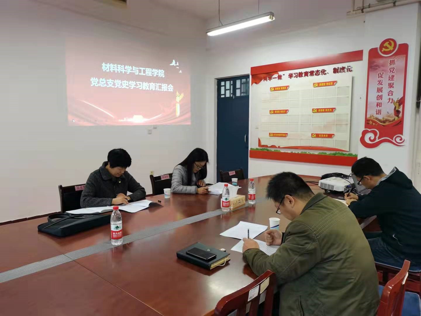 指导组一行认真听取了各总支书记的工作汇报,并通过座谈、查阅资料等方式,深入了解各部门党史学习教育的开展情况、工作成效、特色亮点、存在不足和下一步工作打算。