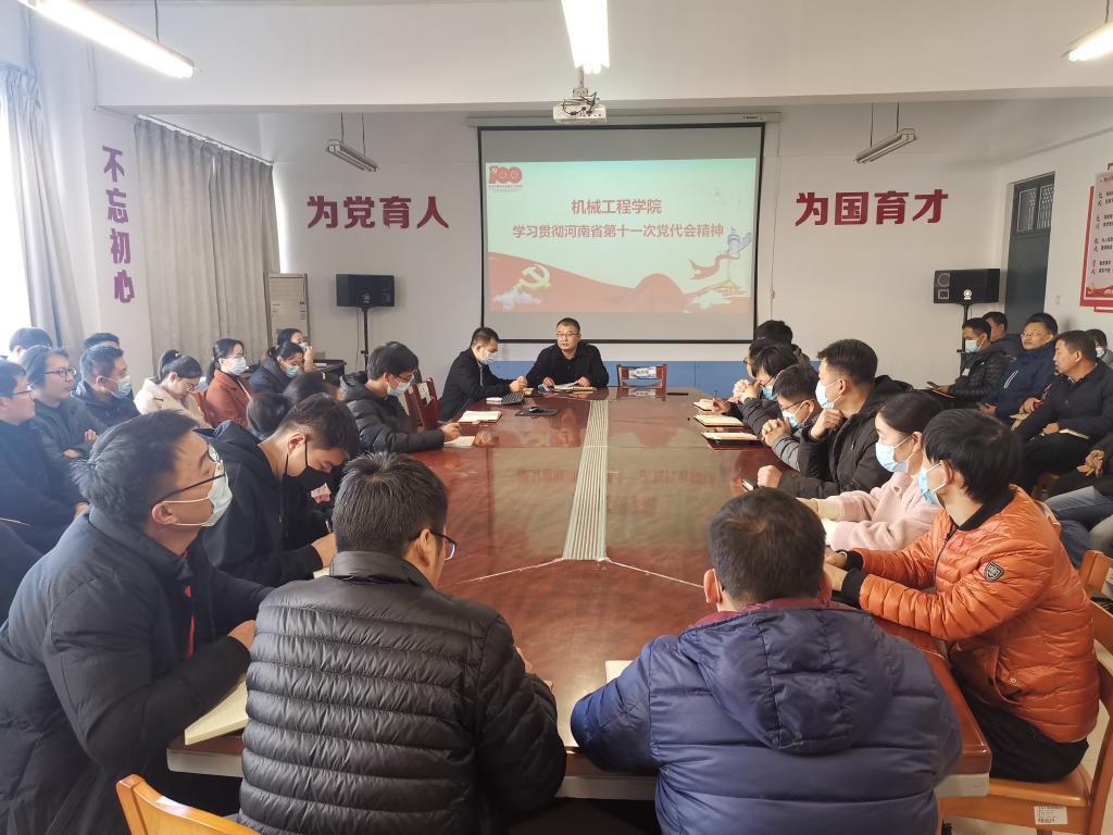 11月10日,机械工程学院召开全体教职工大会,组织学习河南省第十一次党代会精神、安排部署下一阶段工作。