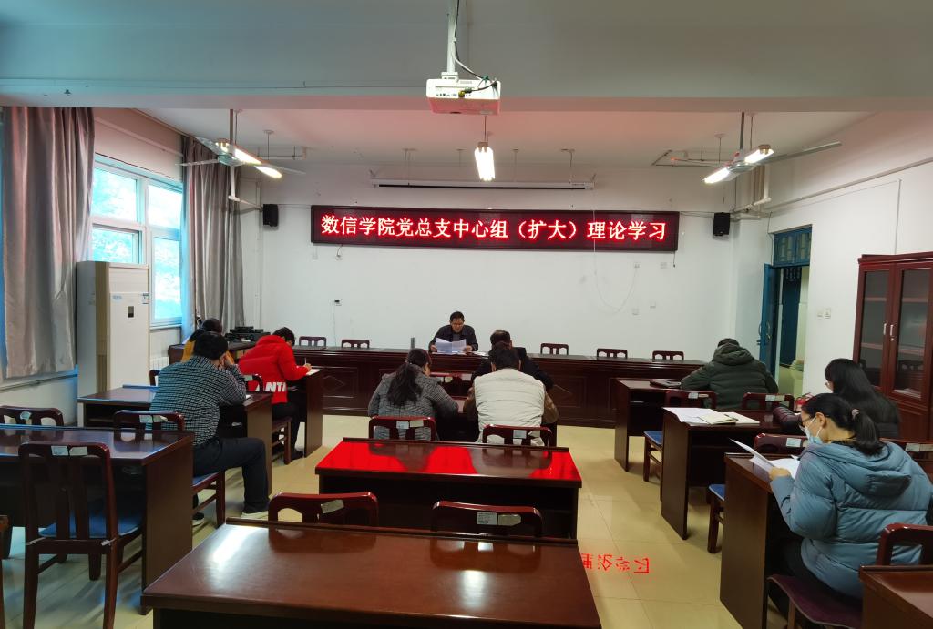 11月10日,数学与信息科学学院党总支在A14-204会议室召开理论学习中心组(扩大)会议,党总支中心组成员、各党支部书记参会,党总支书记华守亮主持会议。