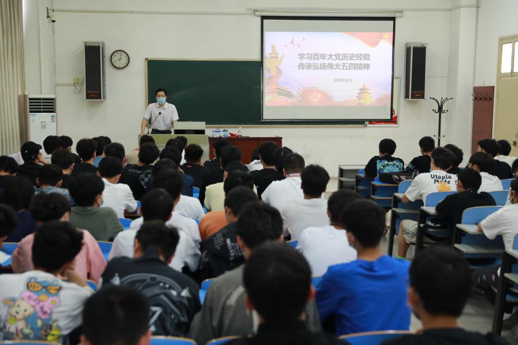5月25日上午,副校长牛晓玉以《学习百年大党历史经验 传承弘扬伟大五四精神》为题,为2021级土木工程(合作办学)专业学生讲思政课。