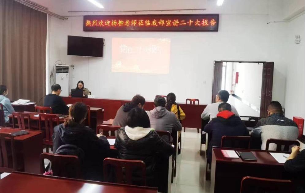 为深入学习贯彻党的二十大精神,3月6日下午,马克思主义学院杨柳老师在体育教学部球类训练馆一楼会议室宣讲党的二十大精神。体育教学部全体教师参加。