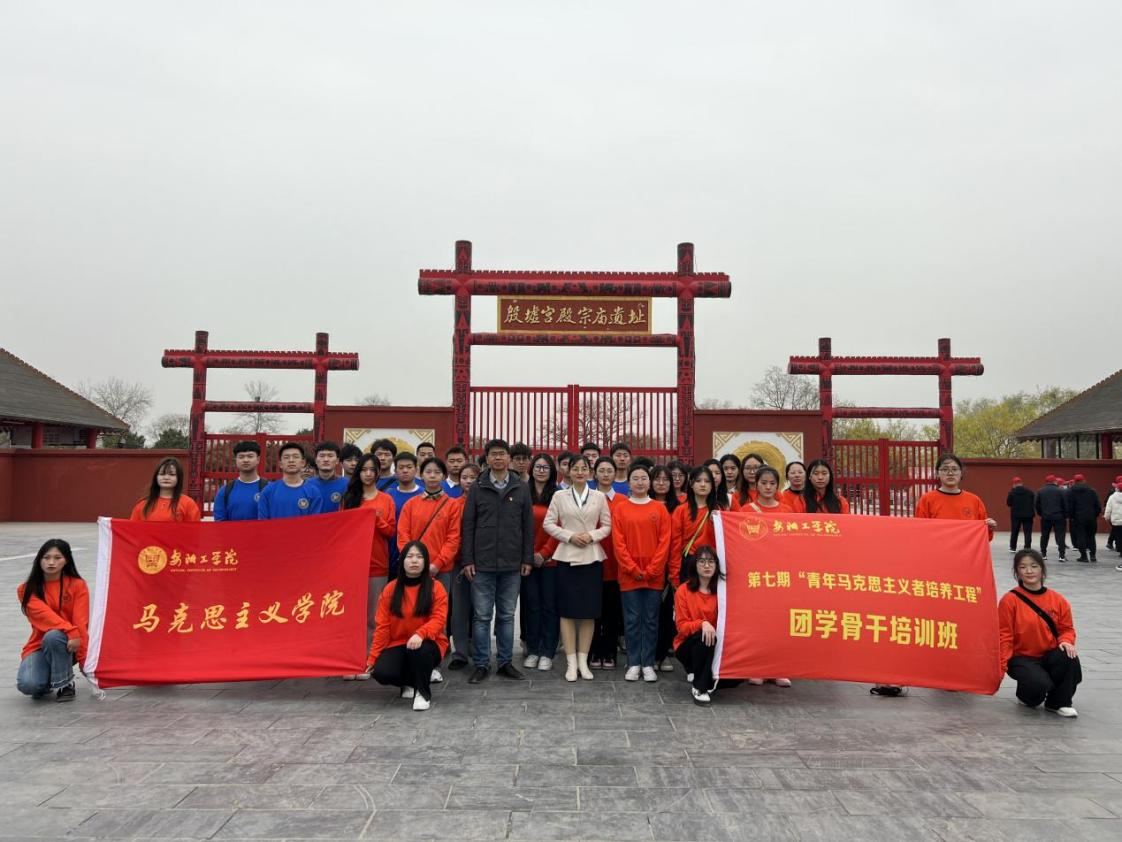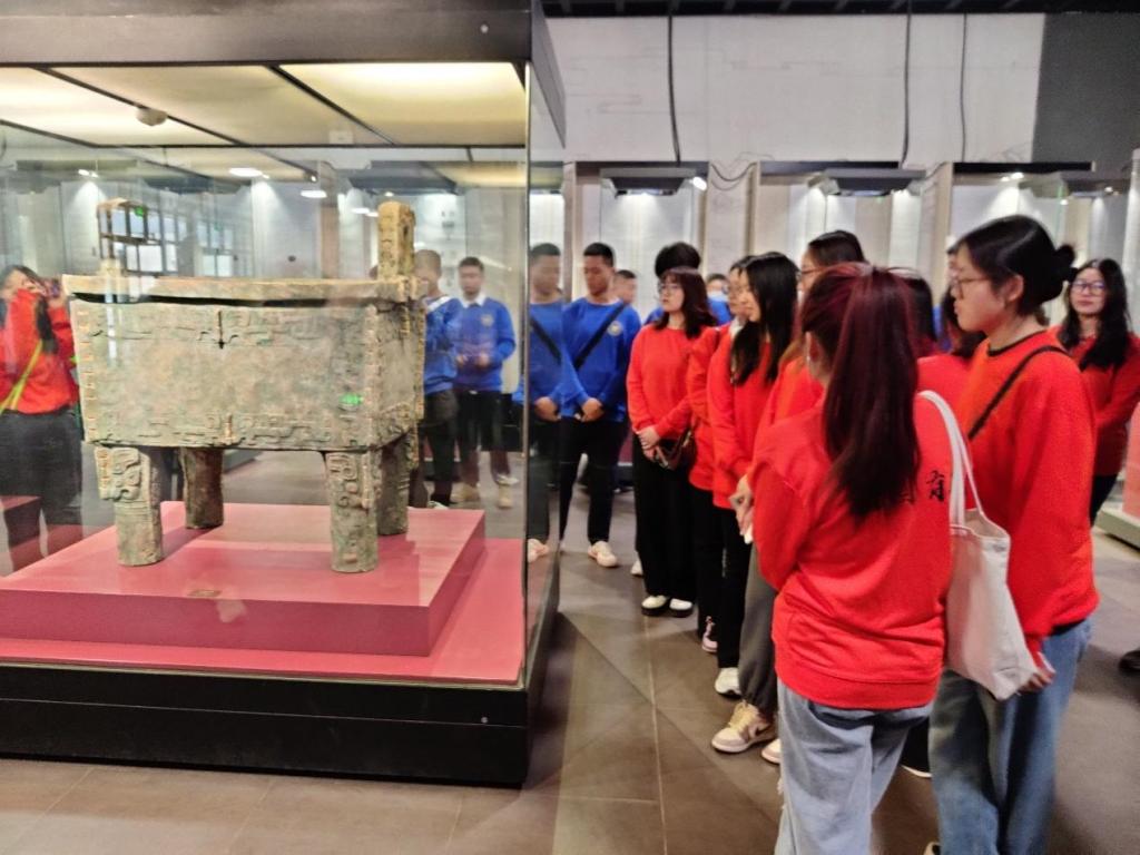 为引领青年学子进一步坚定文化自信,传承优秀传统文化,增强新时代青年的志气、骨气、底气,近日,安阳工学院马克思主义学院教师组织50名“青马班”学员,沿着习近平总书记走过的殷墟博物馆地下展厅、司母戊鼎展台、殷墟车马坑展厅,开启了殷商文化访学之旅。