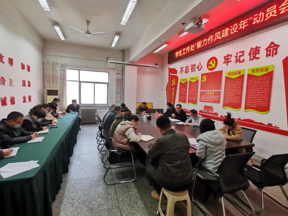 3月2日上午,学生工作处在B02-207会议室召开“能力作风建设年”动员会,学生工作处处长王振宇主持会议,全处教职工参加。