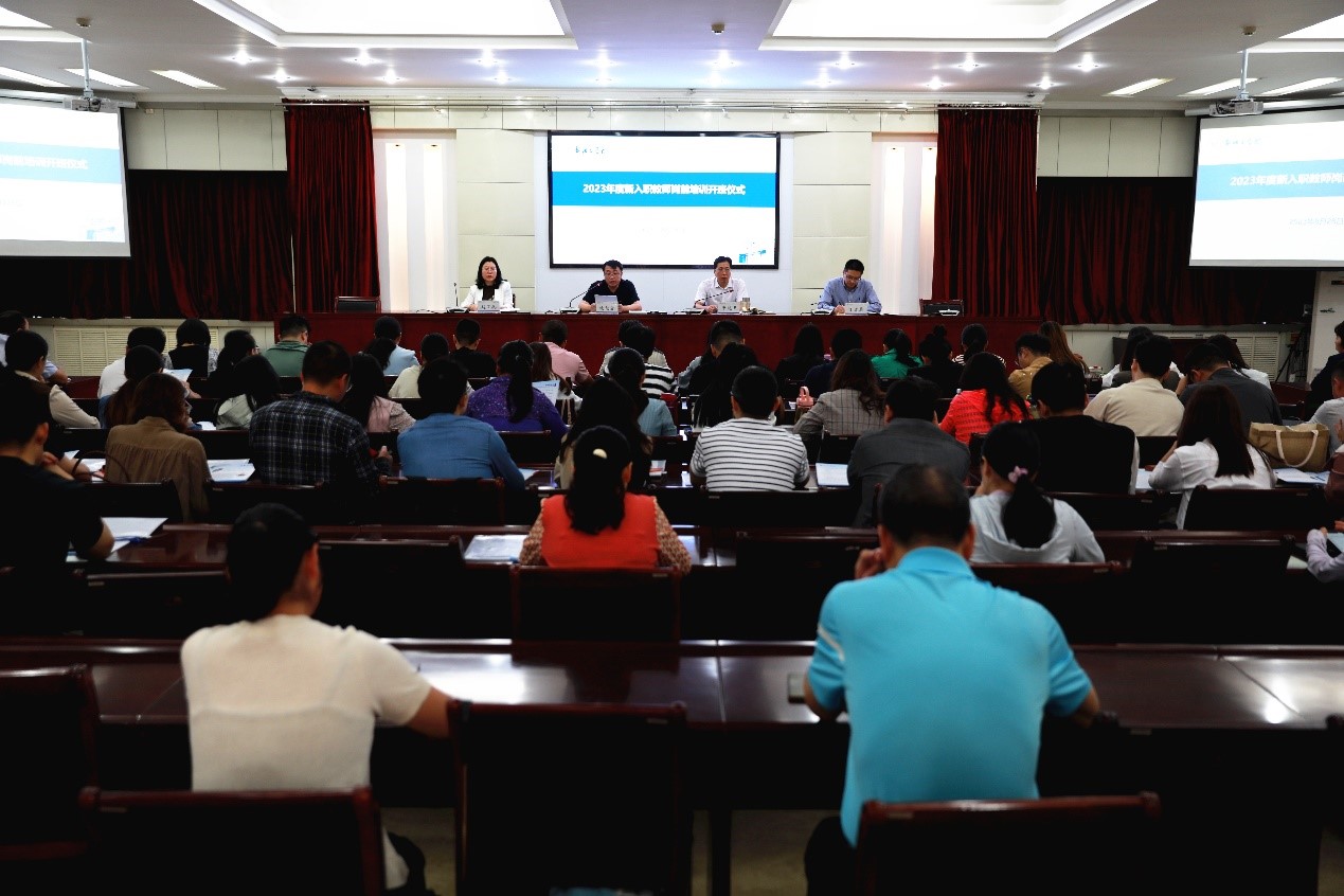 8月28日上午,我校在行政楼四楼会议室举行2023年度新入职教师岗前培训开班仪式。校长沈记全出席开班仪式并讲话,副校长牛晓玉主持会议,新入职教师、各学院院长、教学副院长及相关职能部门负责人参加开班仪式。
