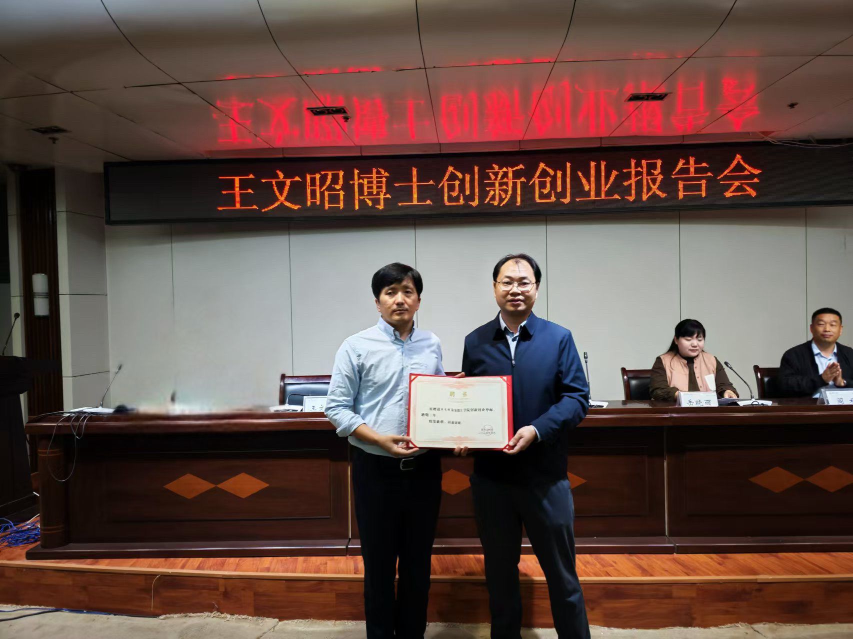 副校长刘林为王文昭博士颁发创新创业导师聘书