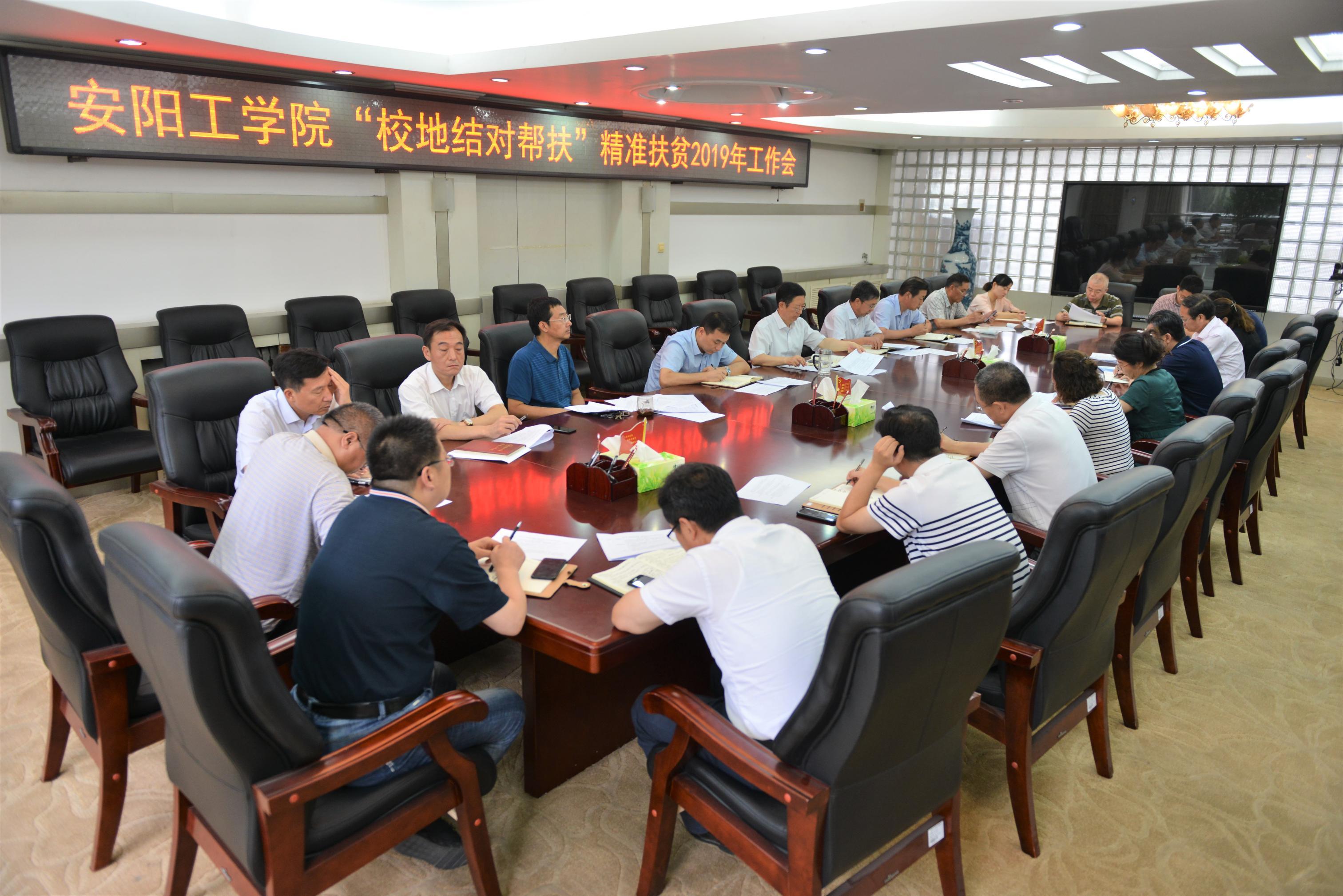 7月4日上午,安阳工学院“校地结对帮扶”精准扶贫2019年工作会议在行政楼二楼会议室召开。校长景国勋出席会议并讲话,副校长万鹏杰主持会议,党委办公室、党委组织部、嗯好舒服的内射视频、学生处、校长办公室、教务处、科研处等相关部门负责人及各学院负责人参加会议。