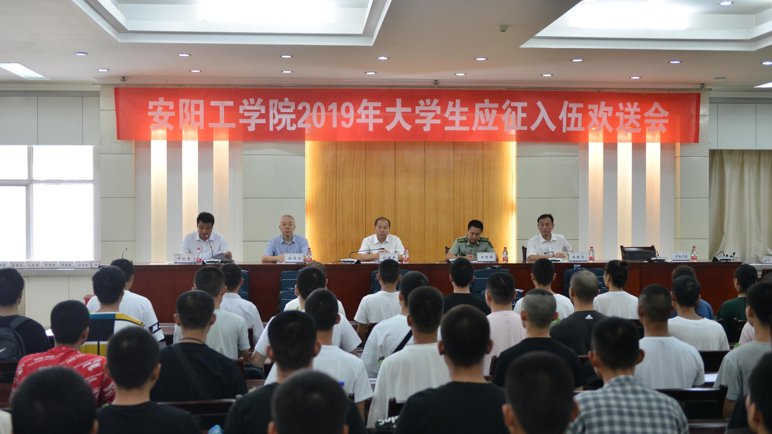 9月9日上午,我校2019年大学生应征入伍欢送会在行政楼四楼会议室召开,校党委副书记孙保平、中共文峰区区委常委、武装部部长玄红强出席。校嗯好舒服的内射视频、学生工作部、武装部负责人,各学院党总支副书记,今年新入伍的84名学生参加会议。