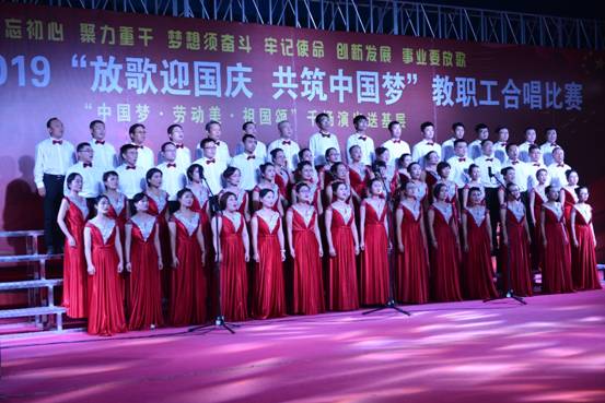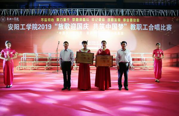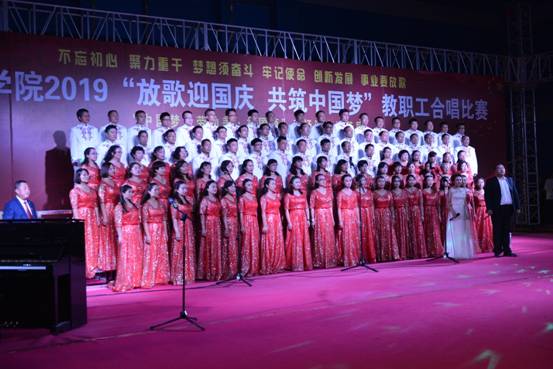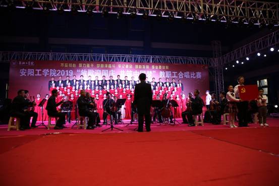 为庆祝中华人民共和国成立七十周年,奏响新中国奋斗交响曲,高唱新时代奋斗者之歌,9月25日下午,安阳工学院隆重举行“放歌迎国庆,共筑中国梦”教职工合唱比赛。校领导任中普、景国勋、孙保平、吴建军、万鹏杰、蒋文龙、郭秋平、李凯灿、牛晓玉、牛瑞庆出席活动,学校各部门师生代表2000余人观看了比赛。