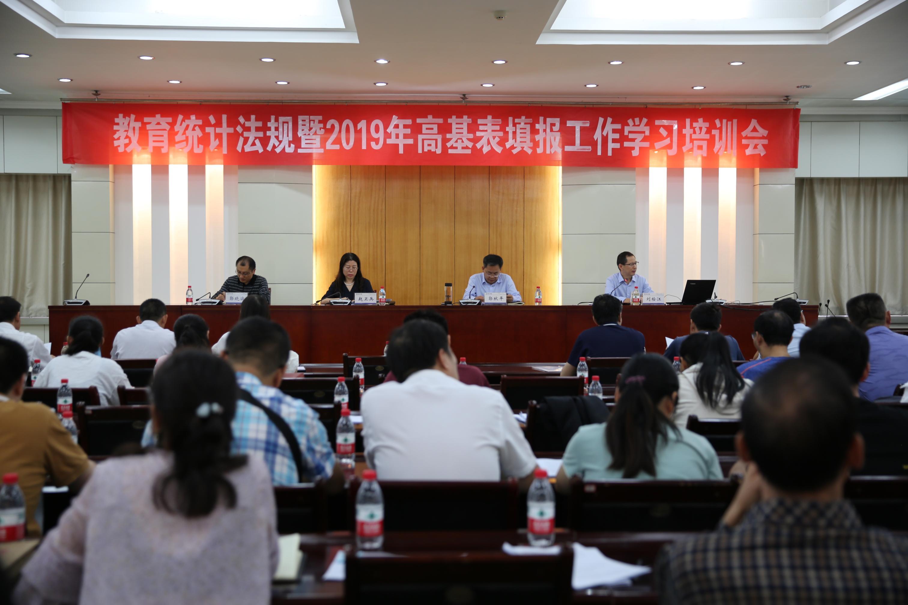 9月30日上午,我校在行政楼四楼会议室召开教育统计法规暨2019年高基表填报工作学习培训会,郭秋平副校长出席,各相关部门负责人、各院(部)负责人和教育统计工作负责人参加。教评办副主任郭晓波主持会议。