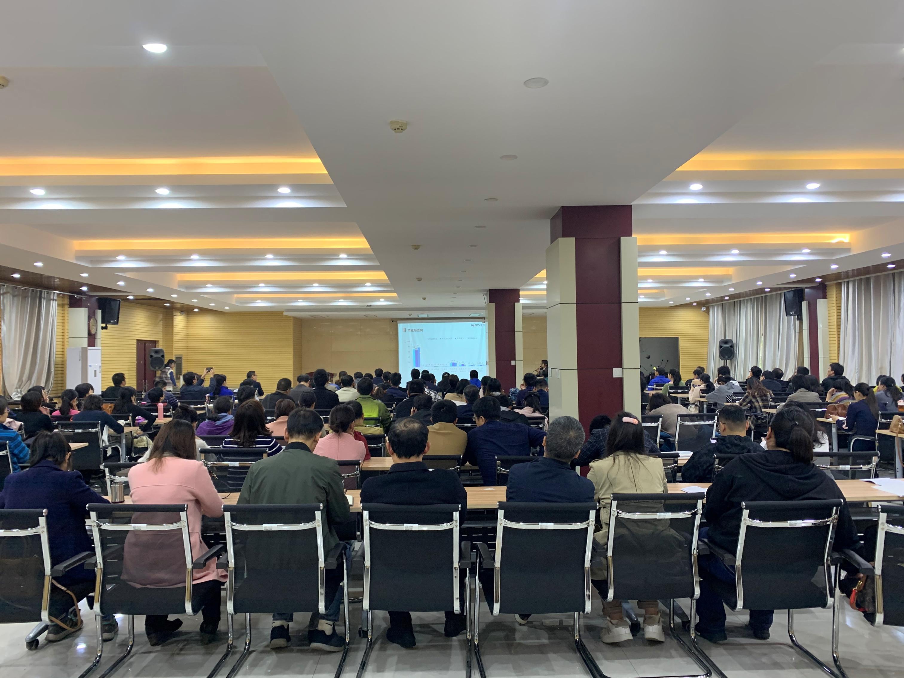 10月24日下午,我校在大学生事务中心召开了《安阳工学院2018届毕业生培养质量评价报告》解读会,麦可思高级数据分析师者华芳作专题报告,各学院负责人、副高以上职称人员及博士、教研室主任、辅导员、科级以上干部、教师代表,相关职能部门负责人听取报告,副校长牛晓玉主持会议。
