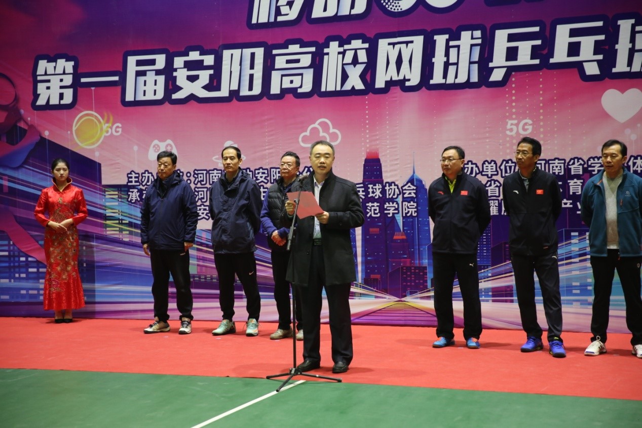 11月9日上午,由河南移动安阳分公司主办,河南省学生体育总会协办、河南省学生体育总会网球协会、河南省学生体育总会乒乓球协会、安阳工学院、安阳师范学院、北京耀胜体育产业股份有限公司承办的“移动5G杯”第一届安阳高校网球乒乓球邀请赛在我校举行。
