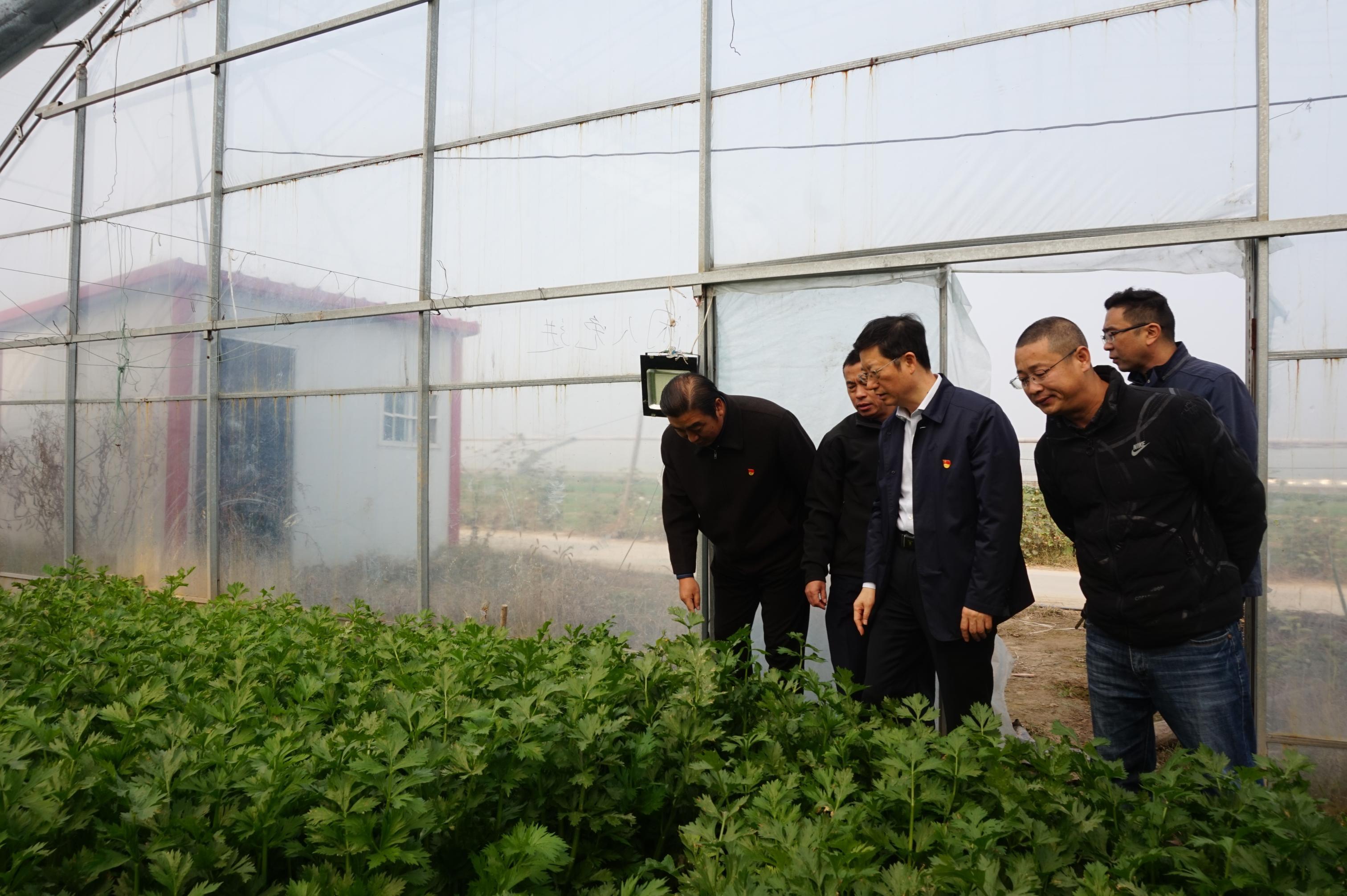 校长景国勋一行查看蔬菜种植基地芹菜、韭菜长势