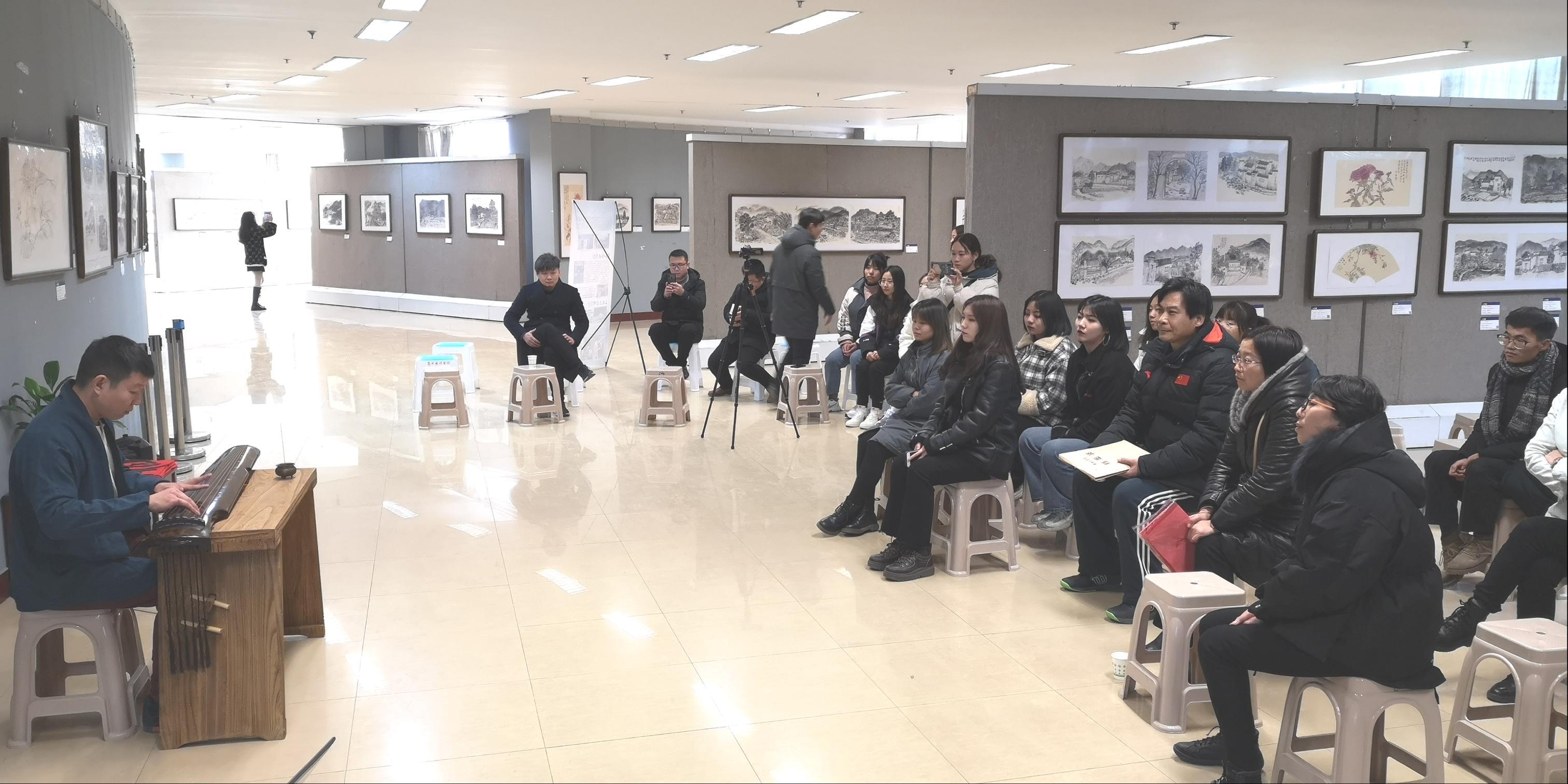 校党委副书记吴建军与师生共同欣赏古琴演奏