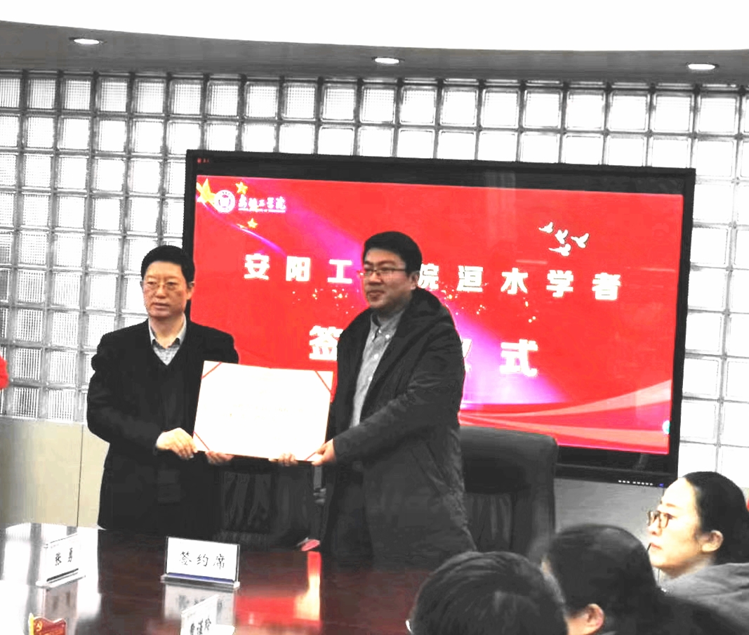 1月9日下午,我校在行政楼二楼会议室召开首批“洹水学者”聘任仪式。校长景国勋、副校长万鹏杰、牛晓玉出席会议。首批8名“洹水学者”,各学院负责人,校办、发规处、教务处、人事处、科研处、计财处等相关部门负责人和工作人员参加会议。副校长牛晓玉主持会议。