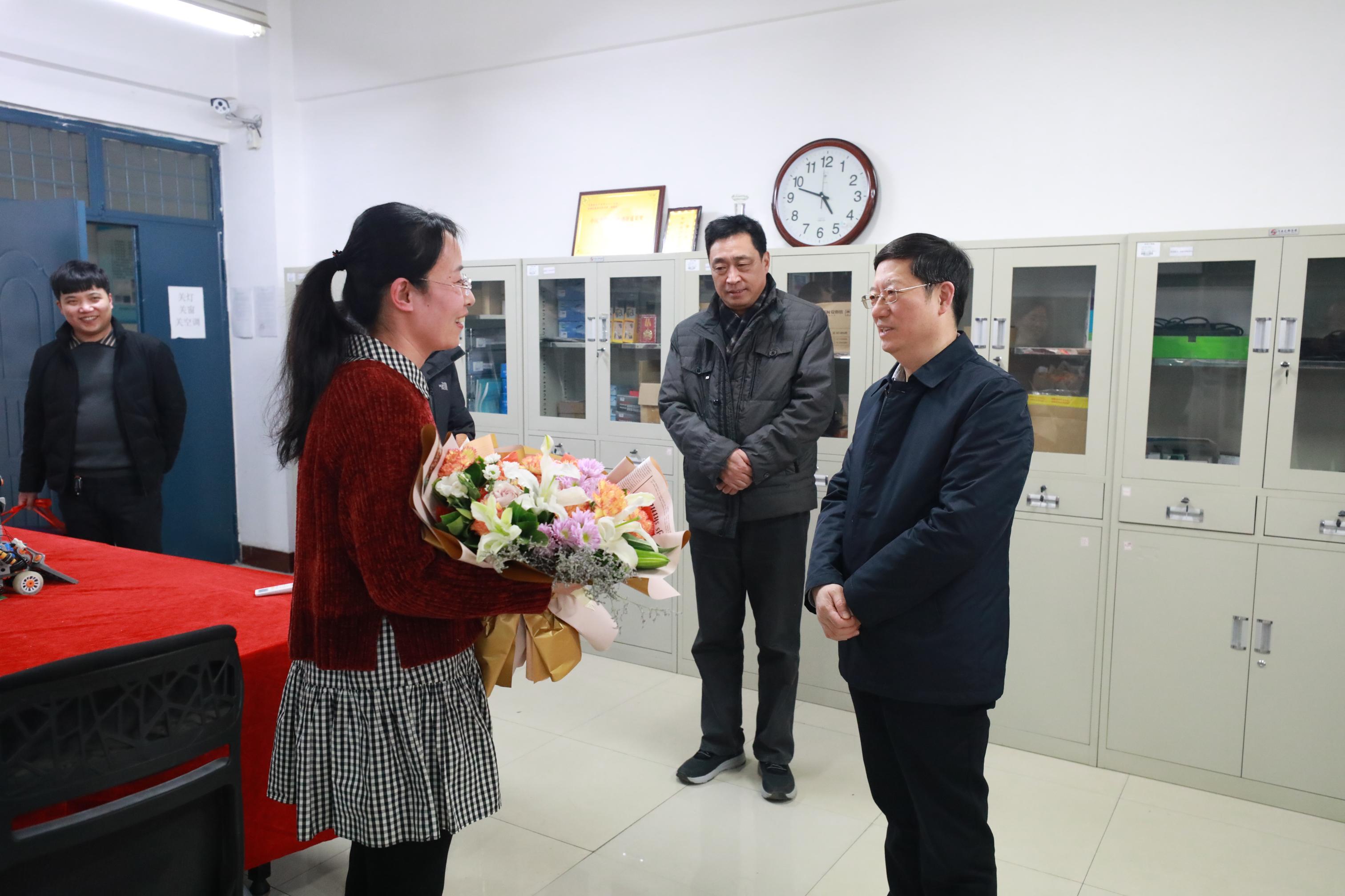 1月14日上午,校长景国勋、副校长李凯灿一行走访慰问了翟雁等优秀教师代表,并深入保卫处、后勤管理处、洹滨校区等基层部门,慰问了春节期间坚守岗位的教职员工。校办、人事处、保卫处、后勤管理处、洹滨校区等相关部门负责人陪同参加慰问。