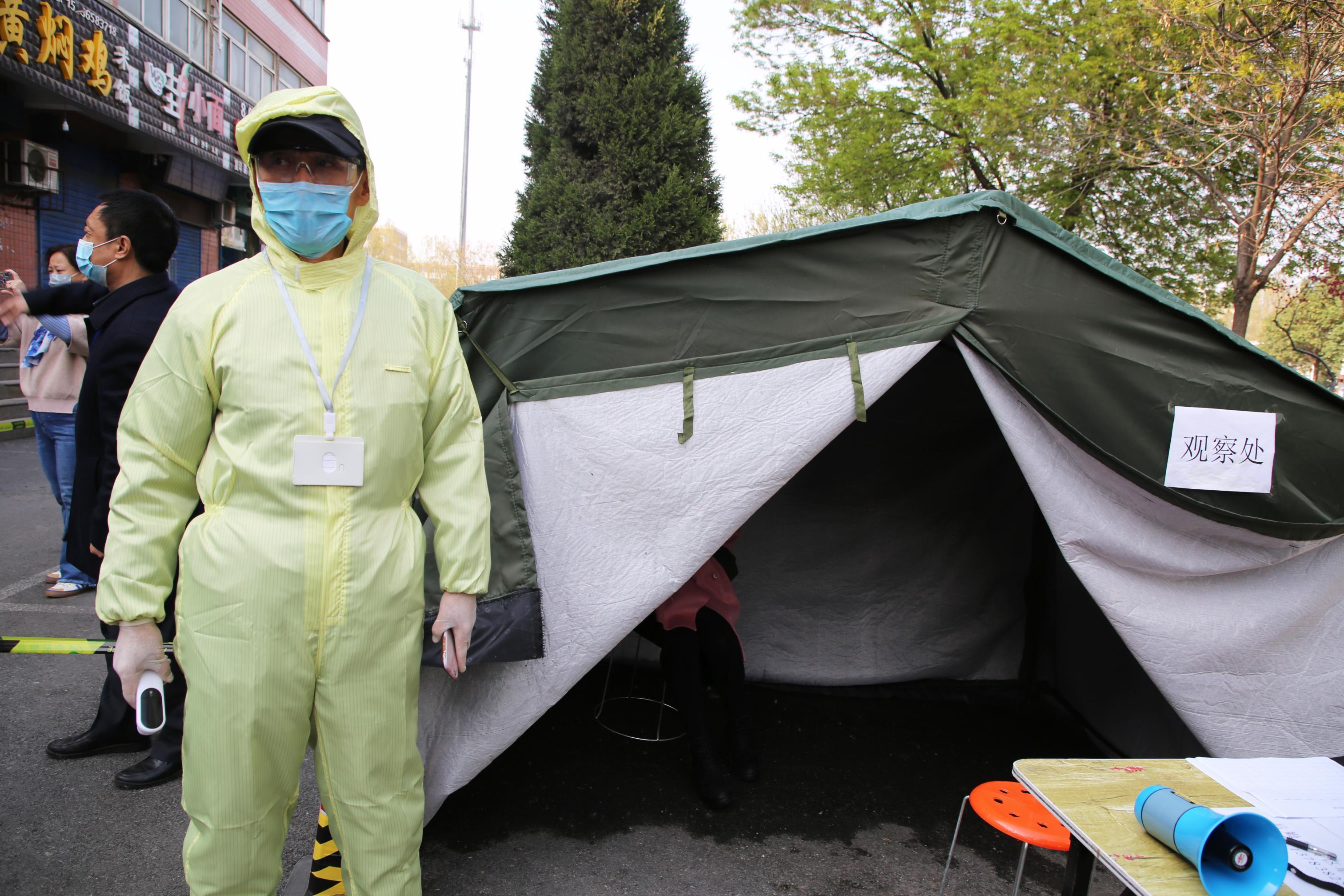 此次模拟演练分为三个环节,第一个环节是学生进入公寓模拟演练。演练活动在校外厚德苑学生公寓进行,现场设置了审核区、智能红外体温检测系统、观察区,并设置了隔离带对学生进行引导。演练中,各部门工作人员临时充当学生角色,首先拿学生证、身份证等证件在审核区进行信息审核,然后通过公寓大门口的红外体温检测系统进行体温检测。如果学生体温高于正常值,系统会发出警报,提示“体温异常”。这时,工作人员会带领体温异常的学生到观察区进行短暂休息,几分钟后重新测量体温,如果重测体温仍然高于正常值,工作人员会带领学生到学校专门设置的隔离区进行进一步的诊疗。