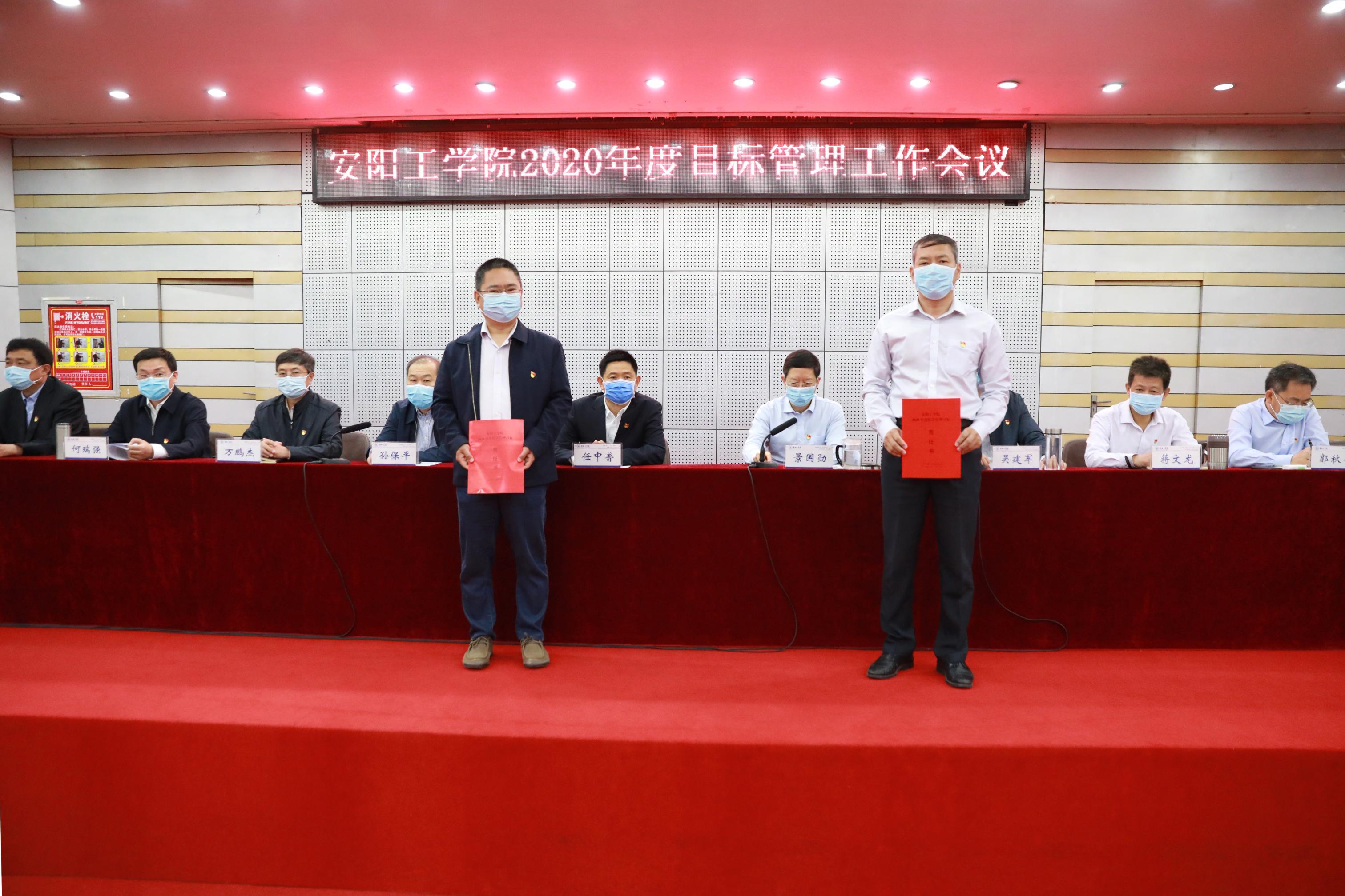 颁奖结束后,校党委书记任中普、校长景国勋代表校党委、校行政向全校各单位下达了2020年度综合目标管理责任书。