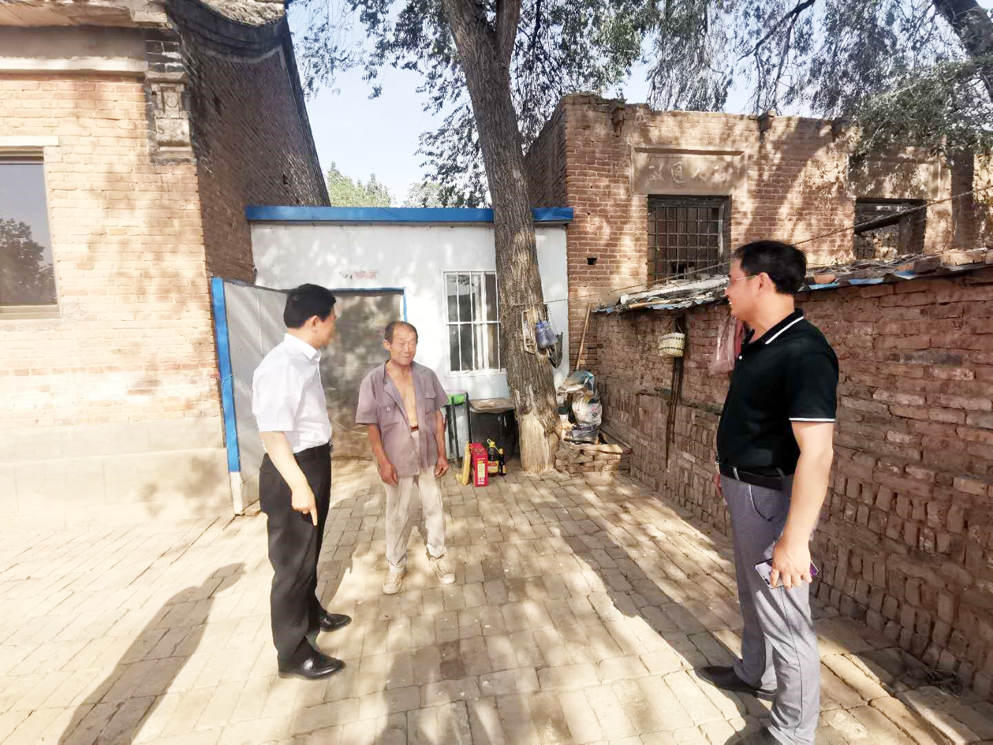 调研期间,任中普一行还实地查看了两村的村容村貌和刘闵城村的绿色蔬菜种植大棚,并对贫困户进行走访慰问,并送上了米、面、油等生活用品。
