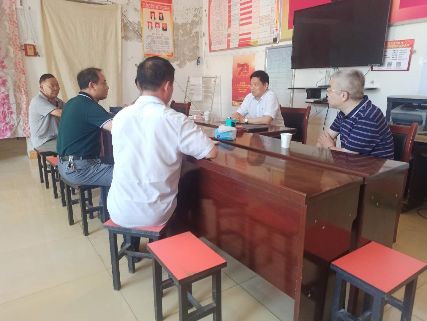 在师良村,任中普与驻村第一书记王峰和村两委干部代表进行了交流,听取了师良村基本情况、近期脱贫攻坚工作开展情况、存在的困难及今后的工作思路。