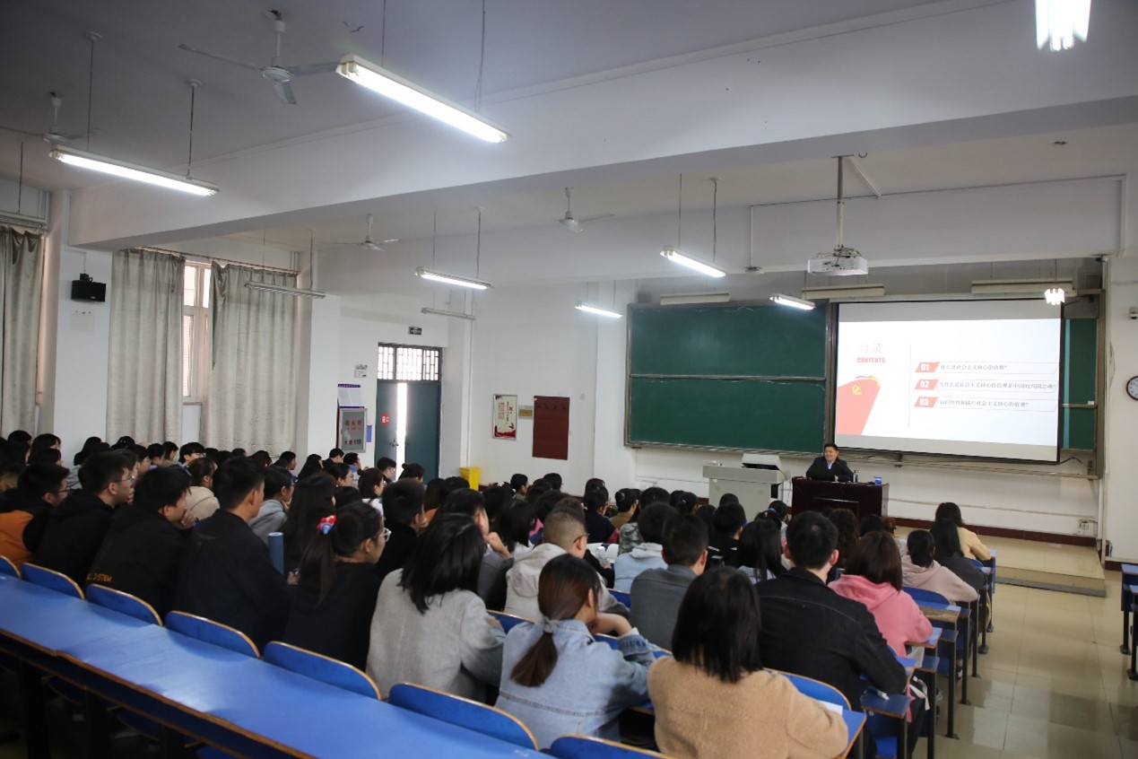 任中普首先从“价值观”谈起,深入浅出地讲解了社会主义核心价值观的产生背景、鲜明特征和内在含义。随后,他从四个方面强调社会主义核心价值观是兴国之魂。一是社会主义核心价值观是对中华优秀传统文化的传承和升华,二是要从近代中国所面临的问题去理解文化和核心价值观,三是要从中国共产党的奋斗历程和文化使命理解中国特色社会主义核心价值观,四是要从改革开放的伟大成就理解中国特色社会主义核心价值观。