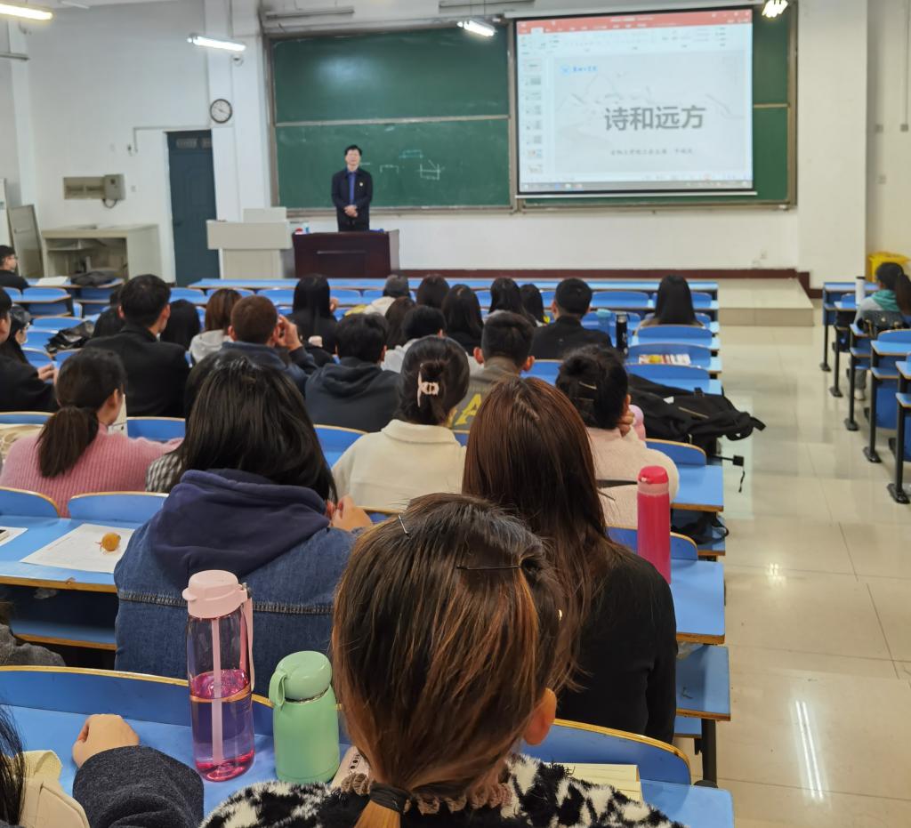 11月17日上午,校工会主席牛瑞庆以《诗和远方》为题,为经济管理学院2020级学生上了一堂理论深度与现实温度相结合的思想政治理论课。